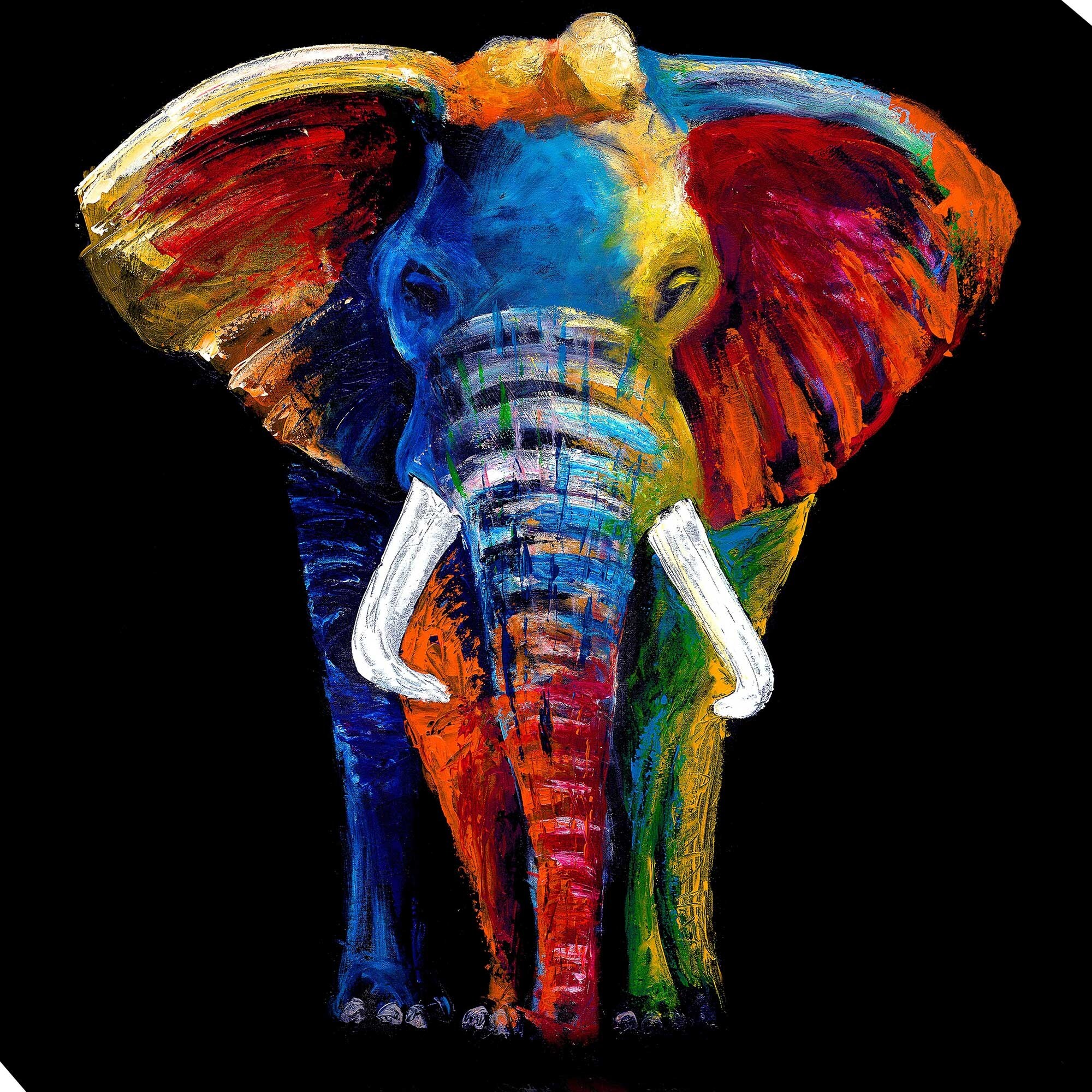 Multi Colored Canvas Abstract Paint Splatter Elephant Wall Art with Abstract Paint Strokes and Spotted Detailing - Multi-Color