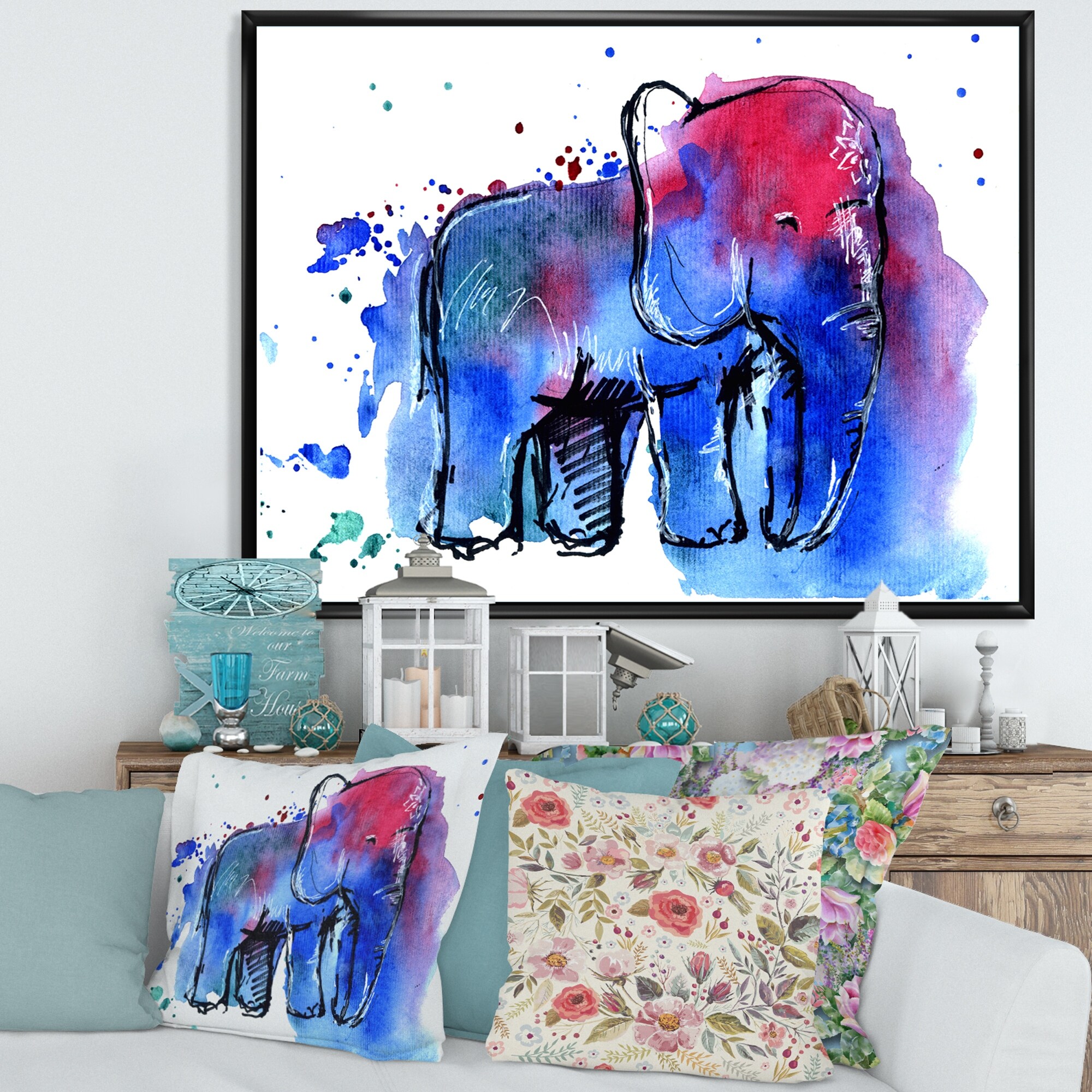Designart "Blue And Red Elephant Impression" Traditional Framed Canvas Wall Art Print