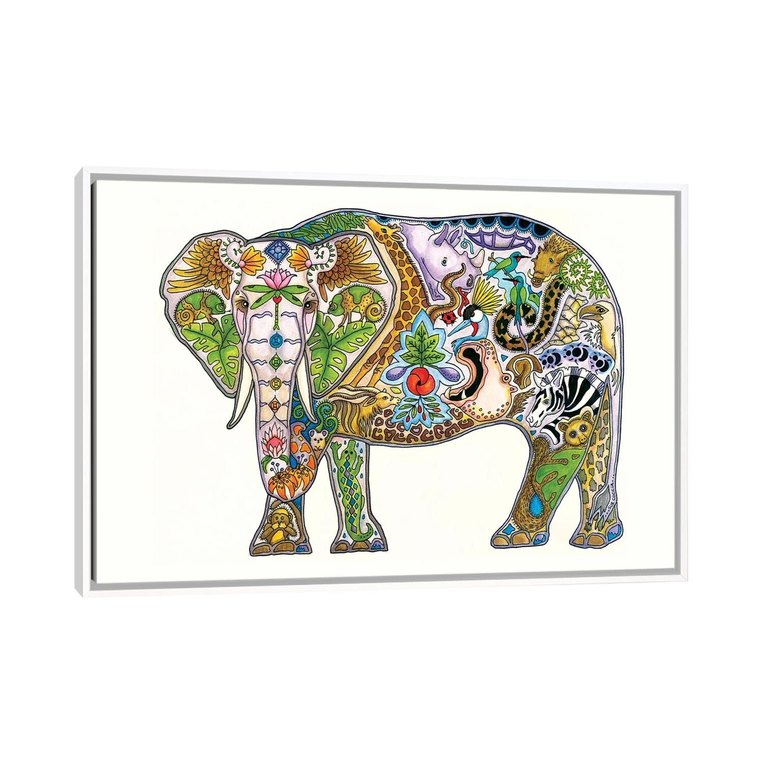 iCanvas "Ornate Elephant II in Color II" by Bioworkz Framed