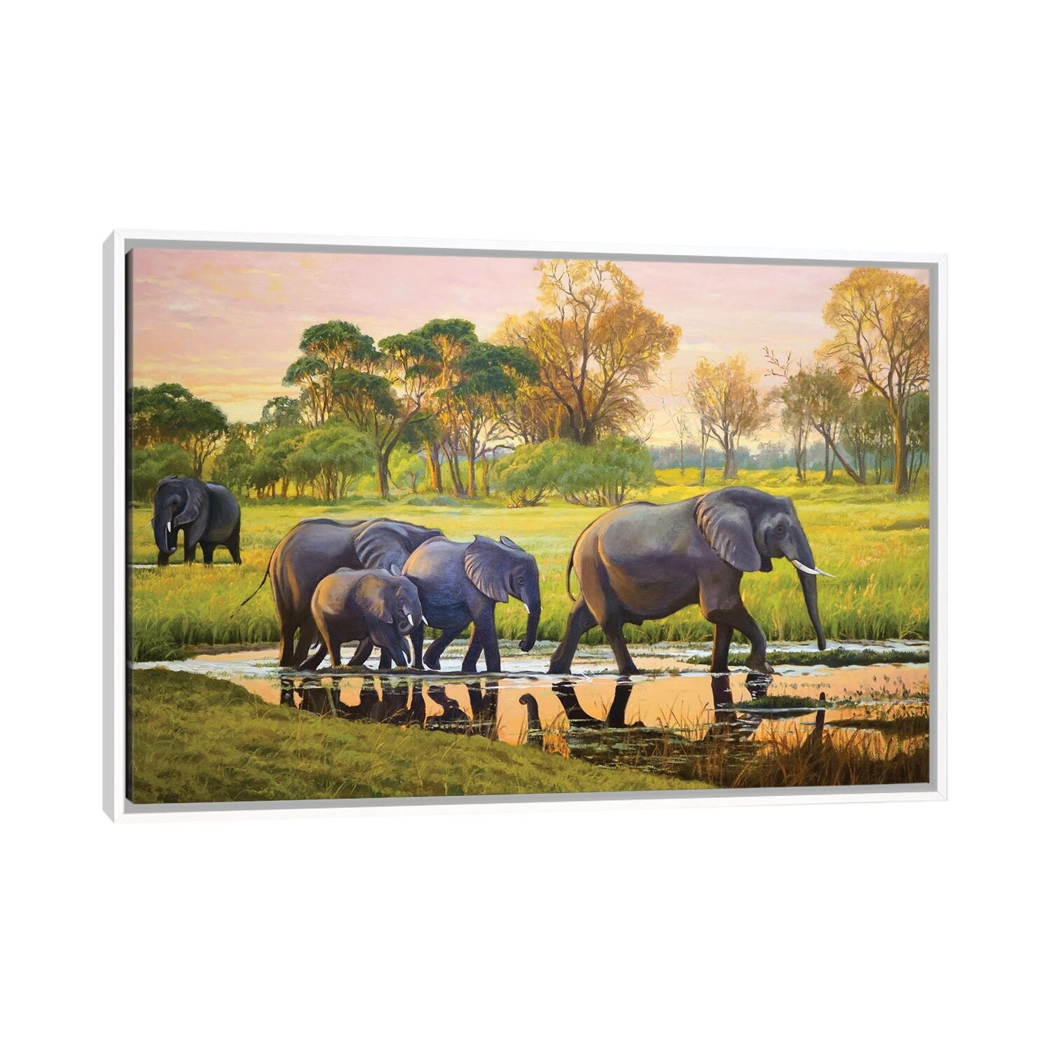 iCanvas "Elephants At Sunset" by Evgeniya Roslik Framed
