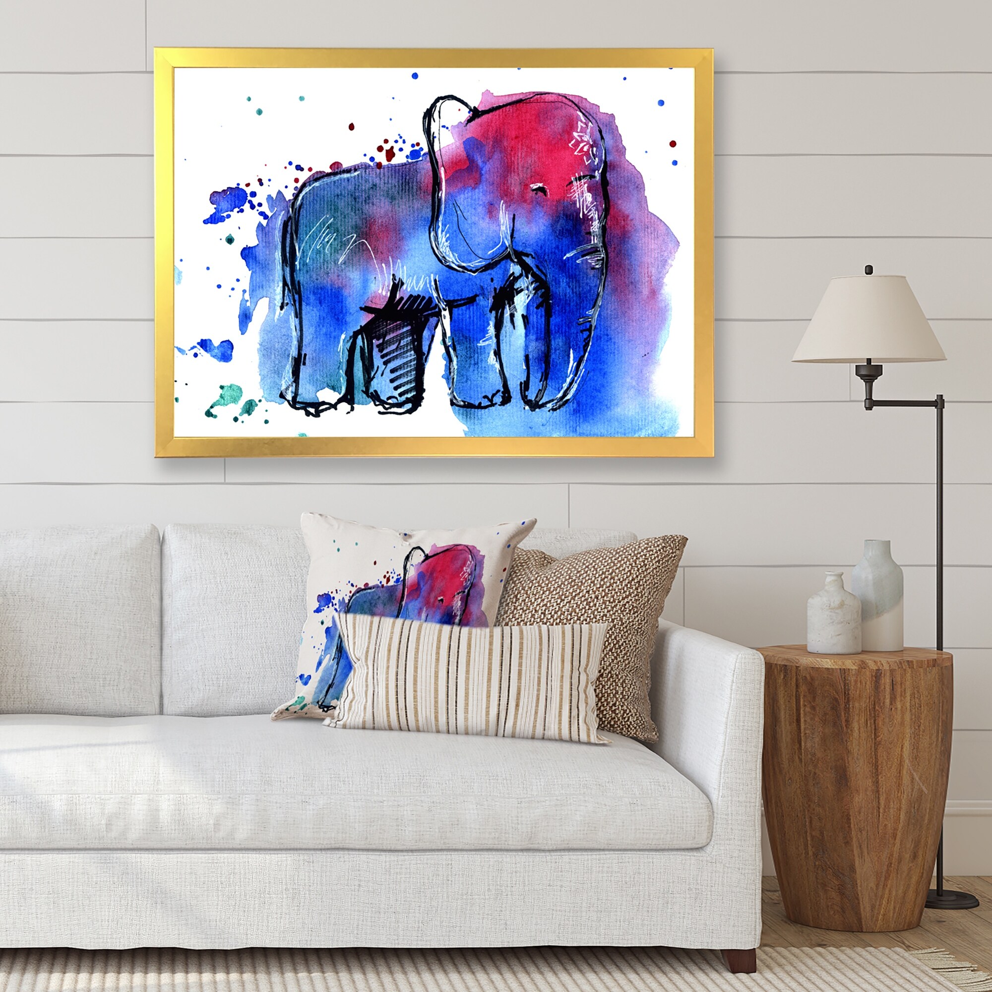 Designart "Blue And Red Elephant Impression" Traditional Framed Art Print