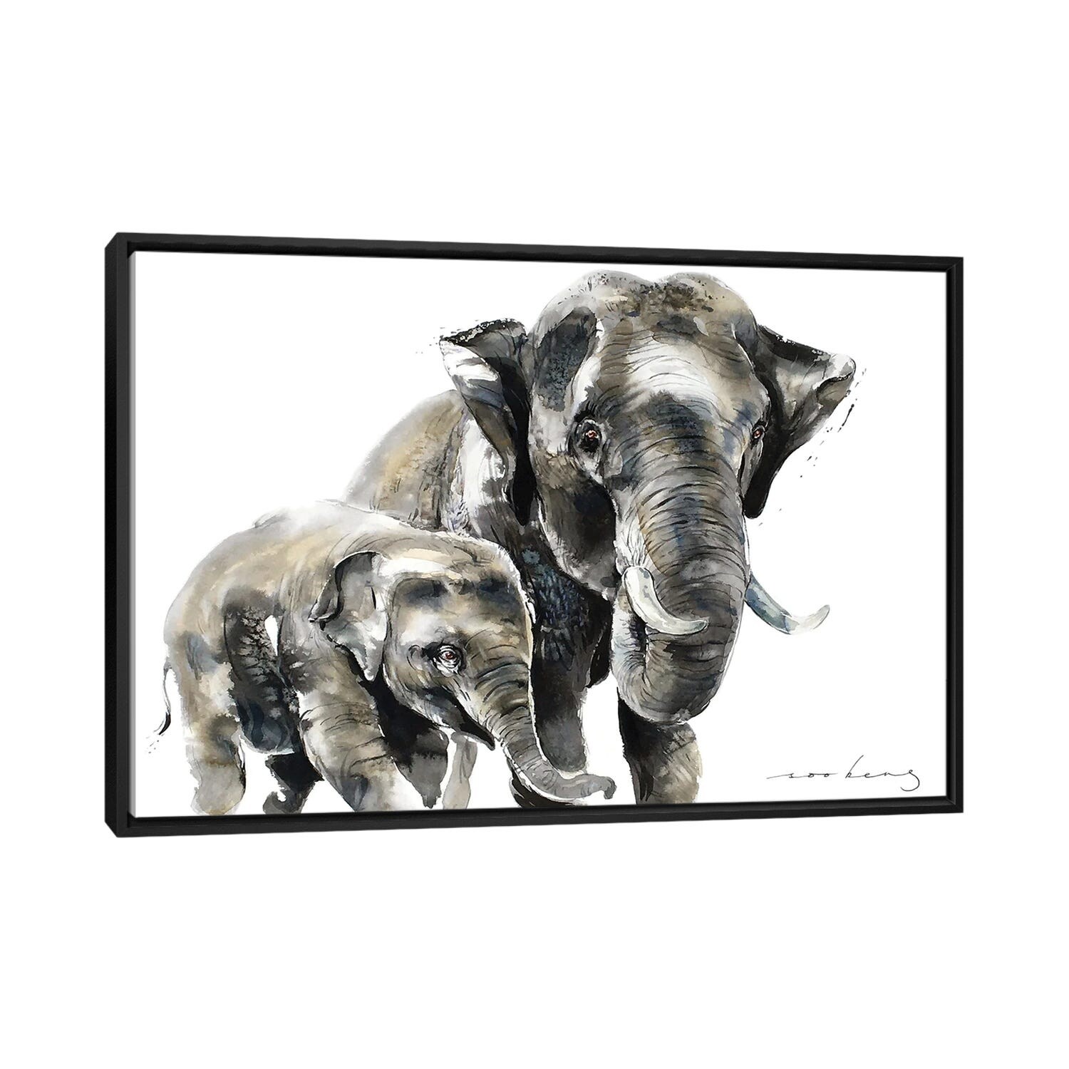 iCanvas "Two Elephants" by EdsWatercolours Framed