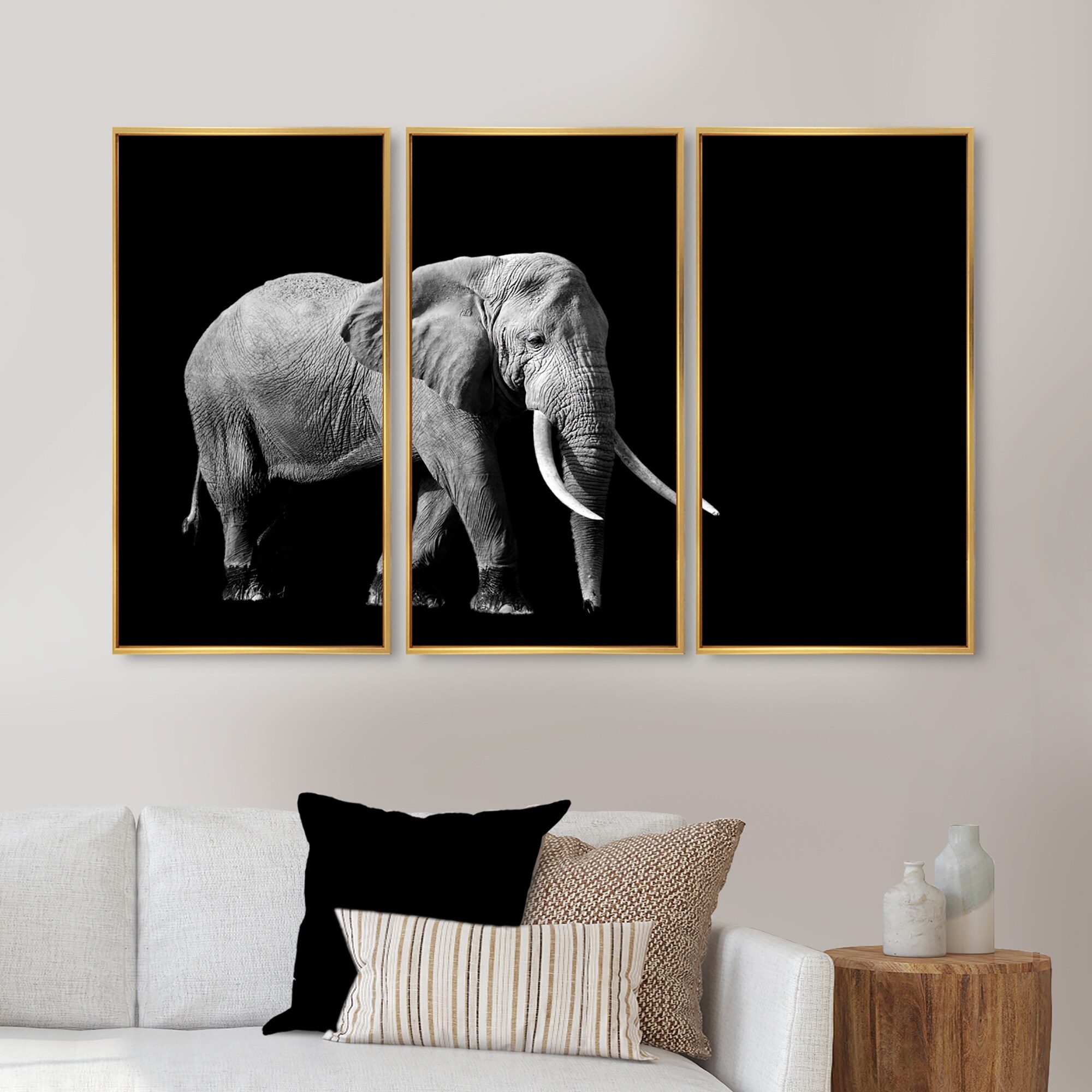 Designart "Single Walking Elephant on dark " Animal Framed Wall Decor Set of 3 - 4 Colors of Frames