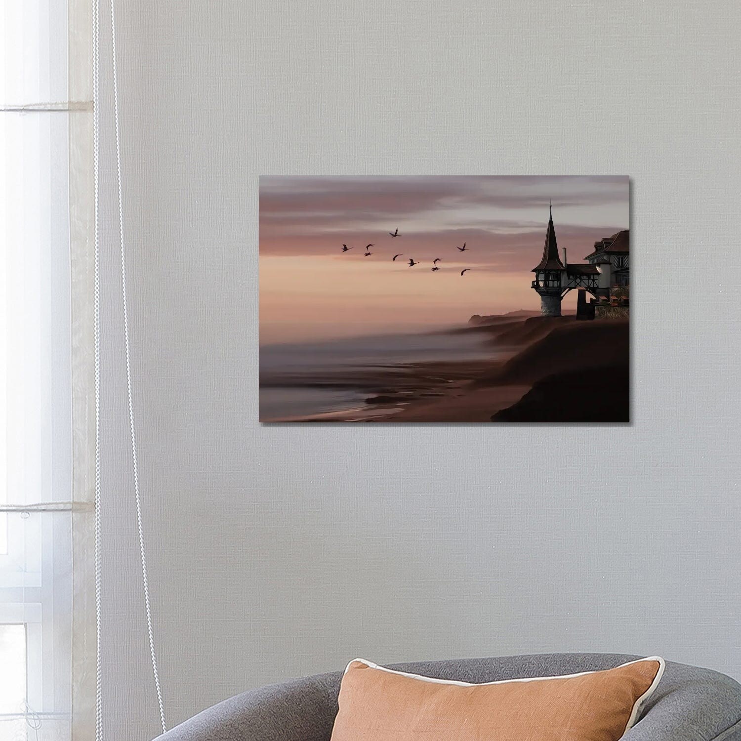 iCanvas "A Flock of Birds Flying Into an Old Castle" by Ievgeniia Bidiuk Canvas Print