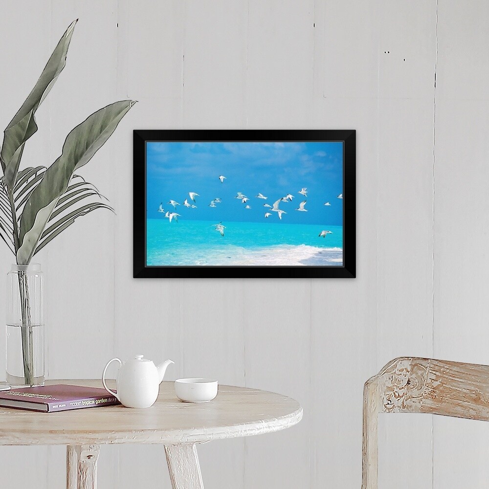 Easy Art Prints Panoramic Images's 'Flock of birds on the beach, Flagler Beach, Florida, USA' Premium Canvas Art