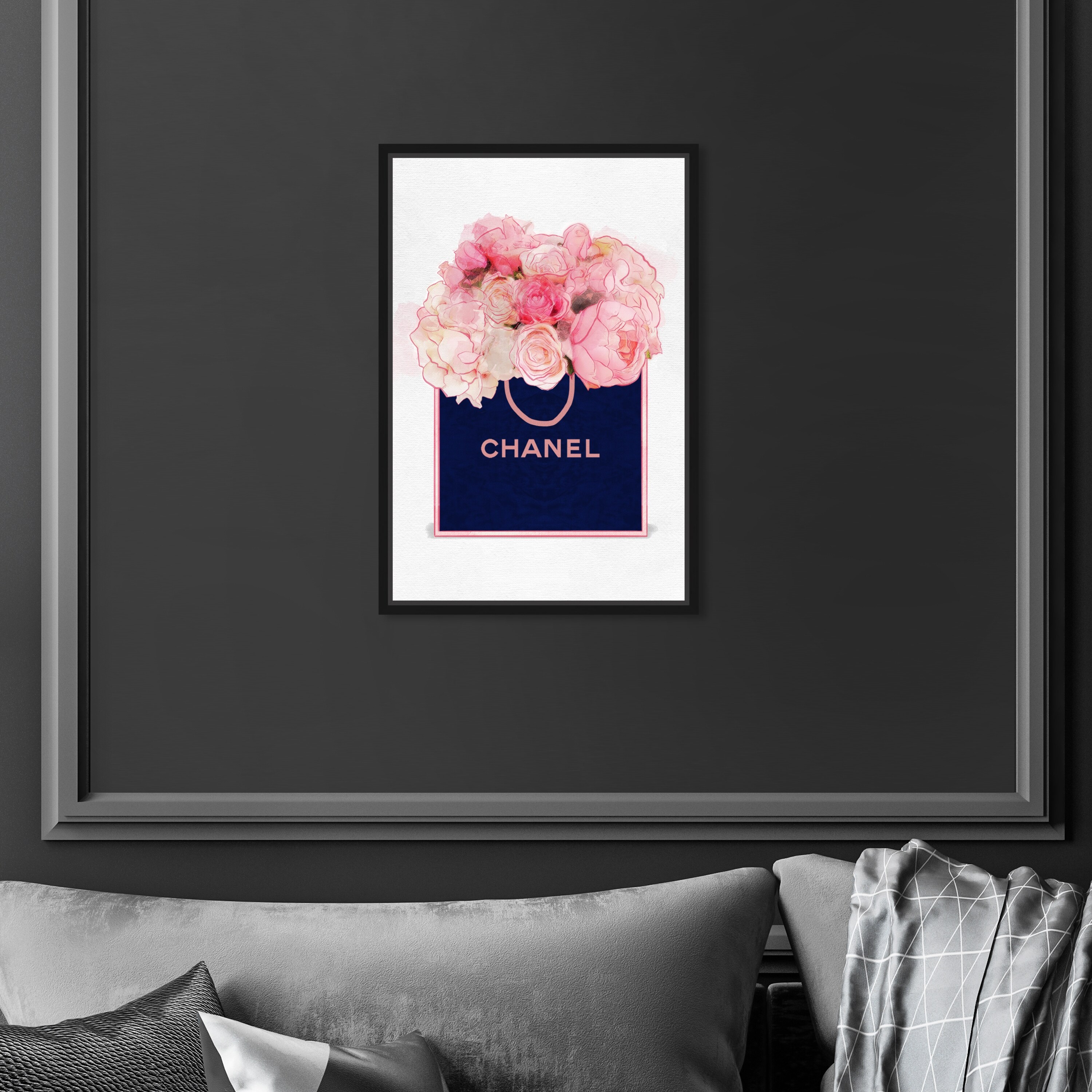 Oliver Gal 'Flower Bag Flocked' Fashion and Glam Wall Art Framed Canvas Print Lifestyle - Blue, Pink