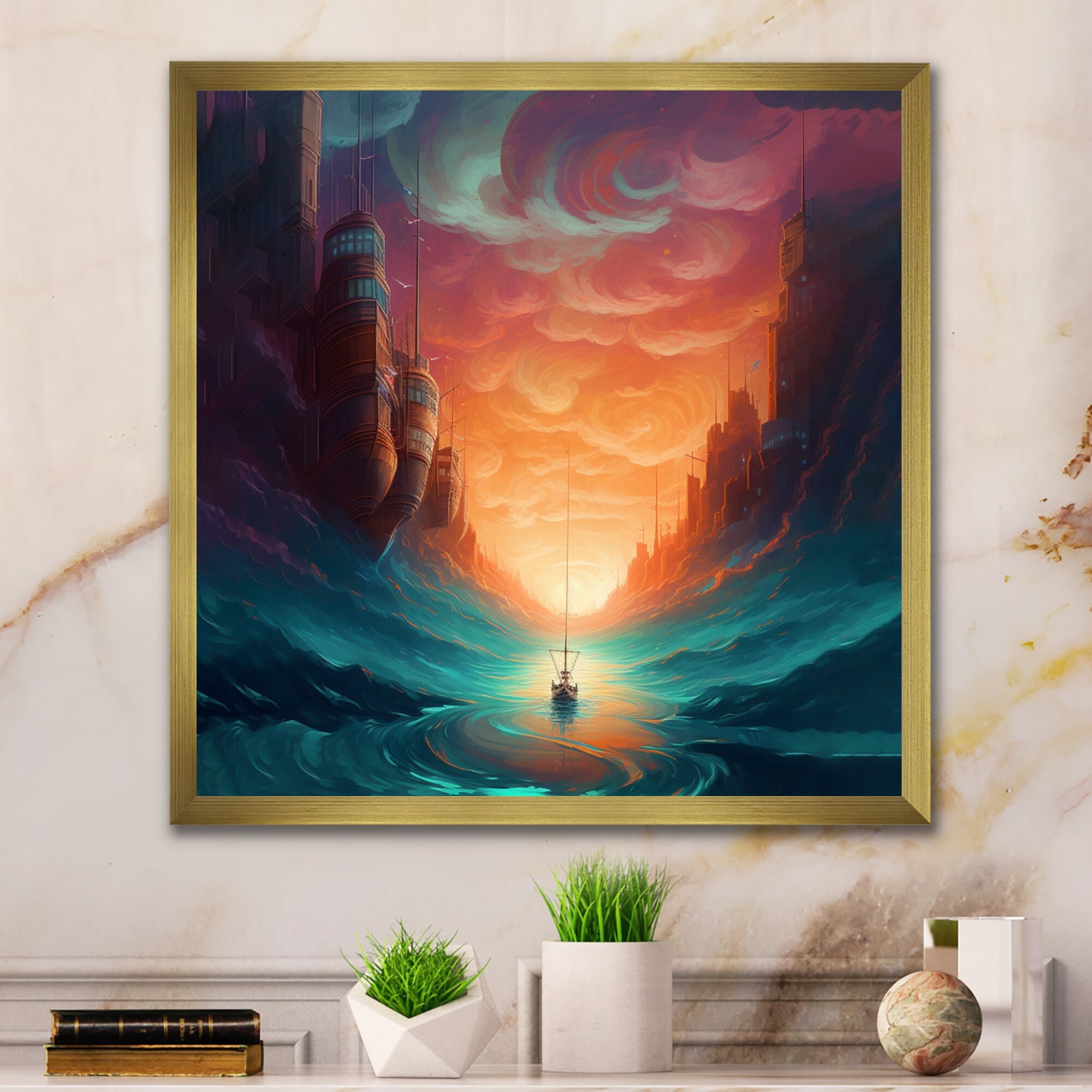 Designart "Living In the Galaxy I" City Futuristis Framed Wall Decor