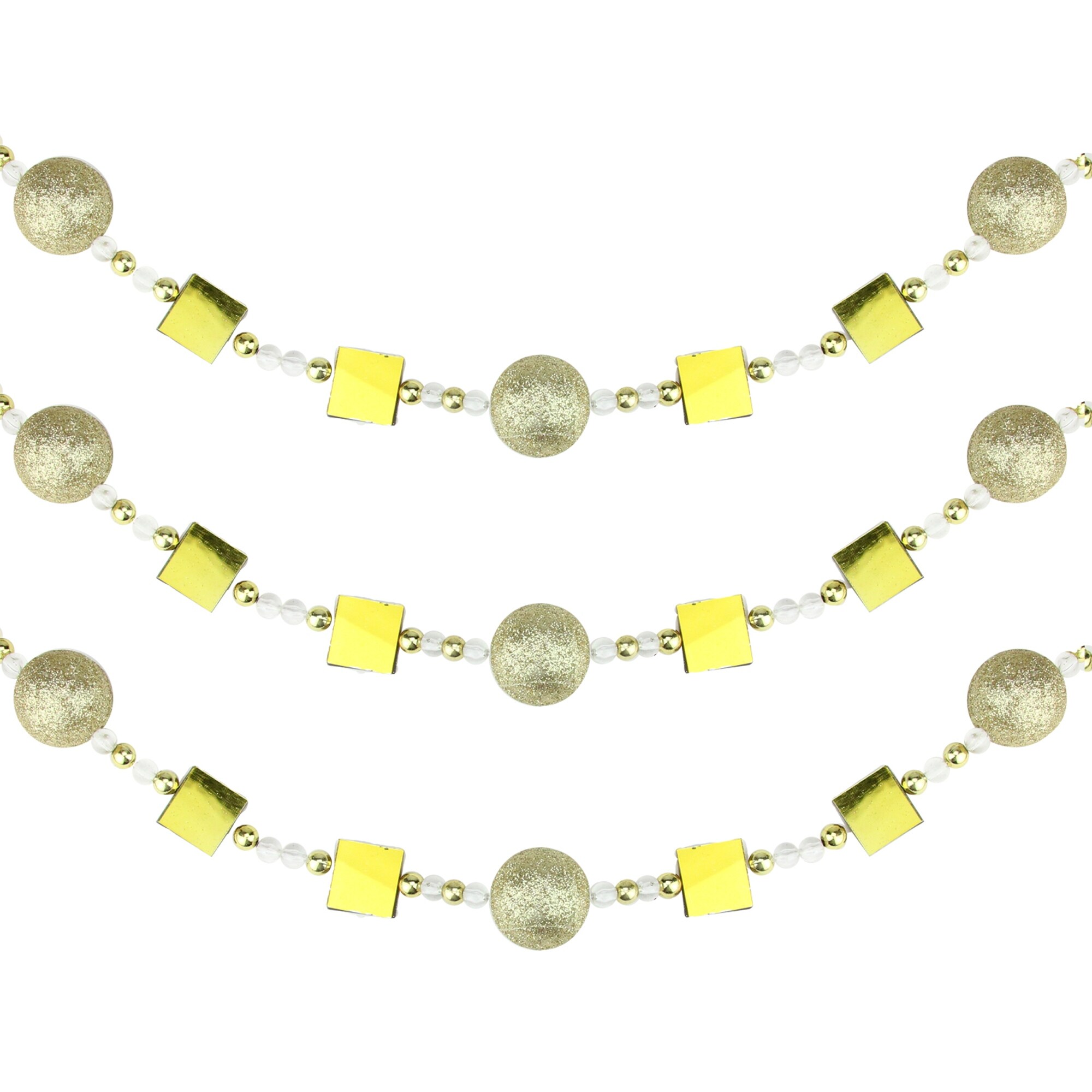 15' Shiny Silver Mirrored Disco Ball Beaded Christmas Garland, Unlit