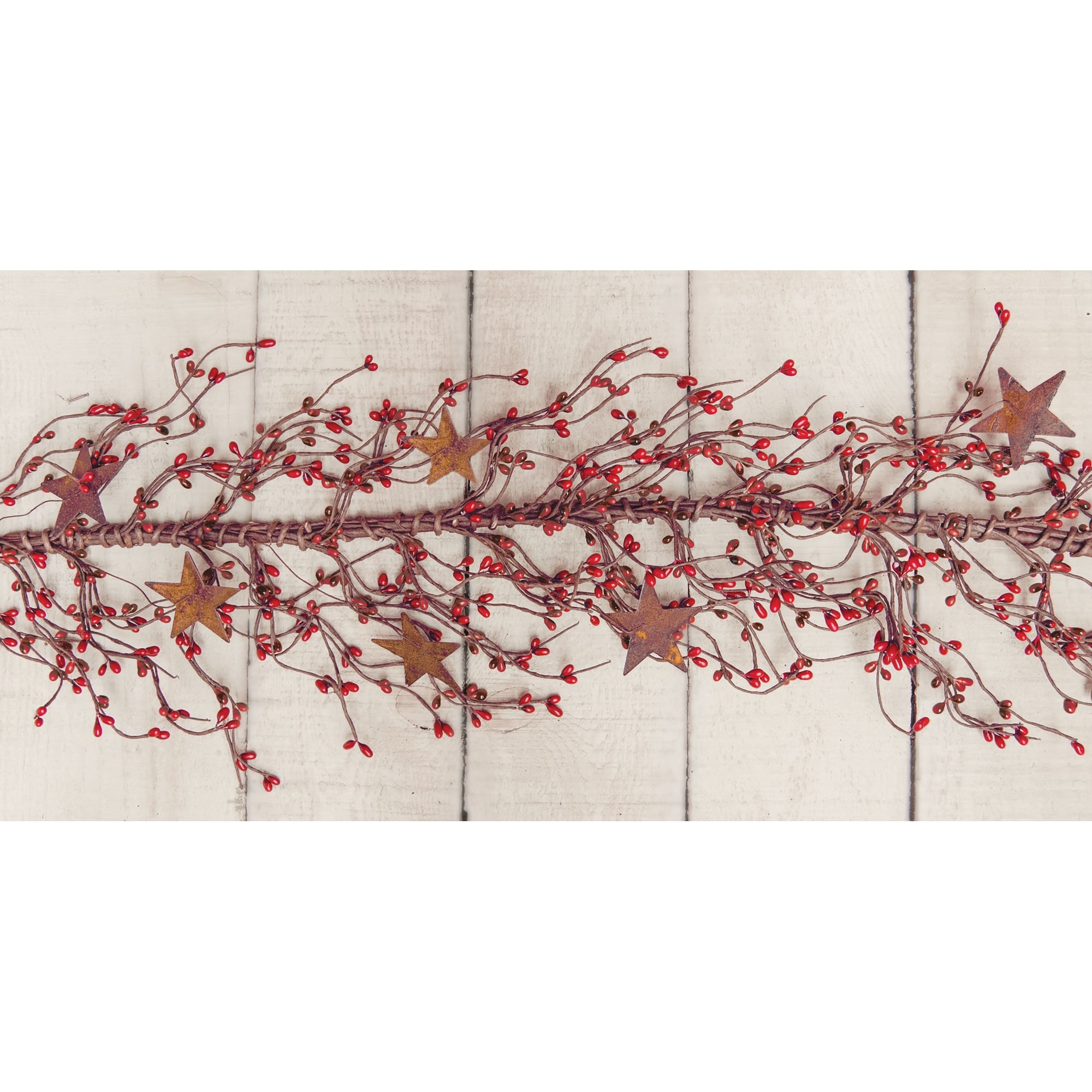 Pip Berry Garland With Stars Red and Burgundy 40" - Red/Burgandy - 40 inches