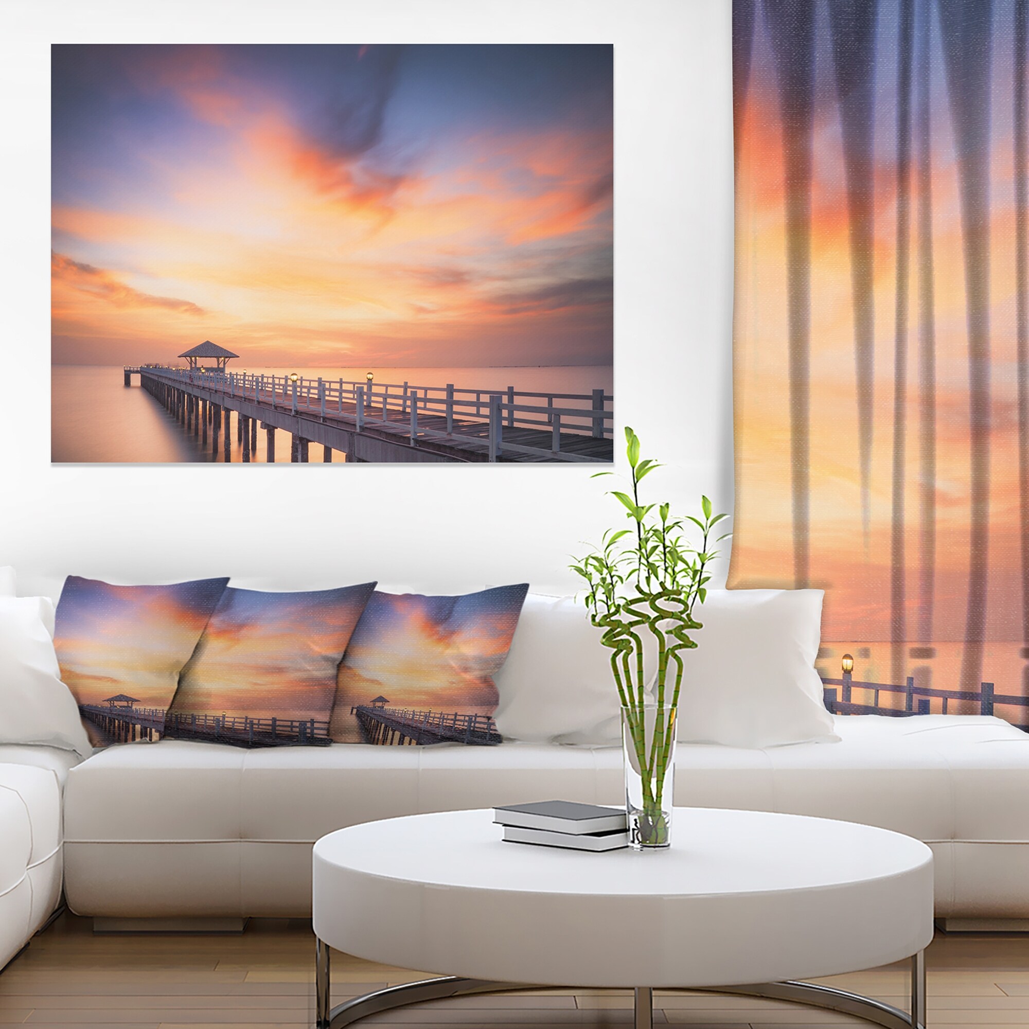 Designart "Pier Infinite to Blue Sea" Seascape Framed Canvas Art Print