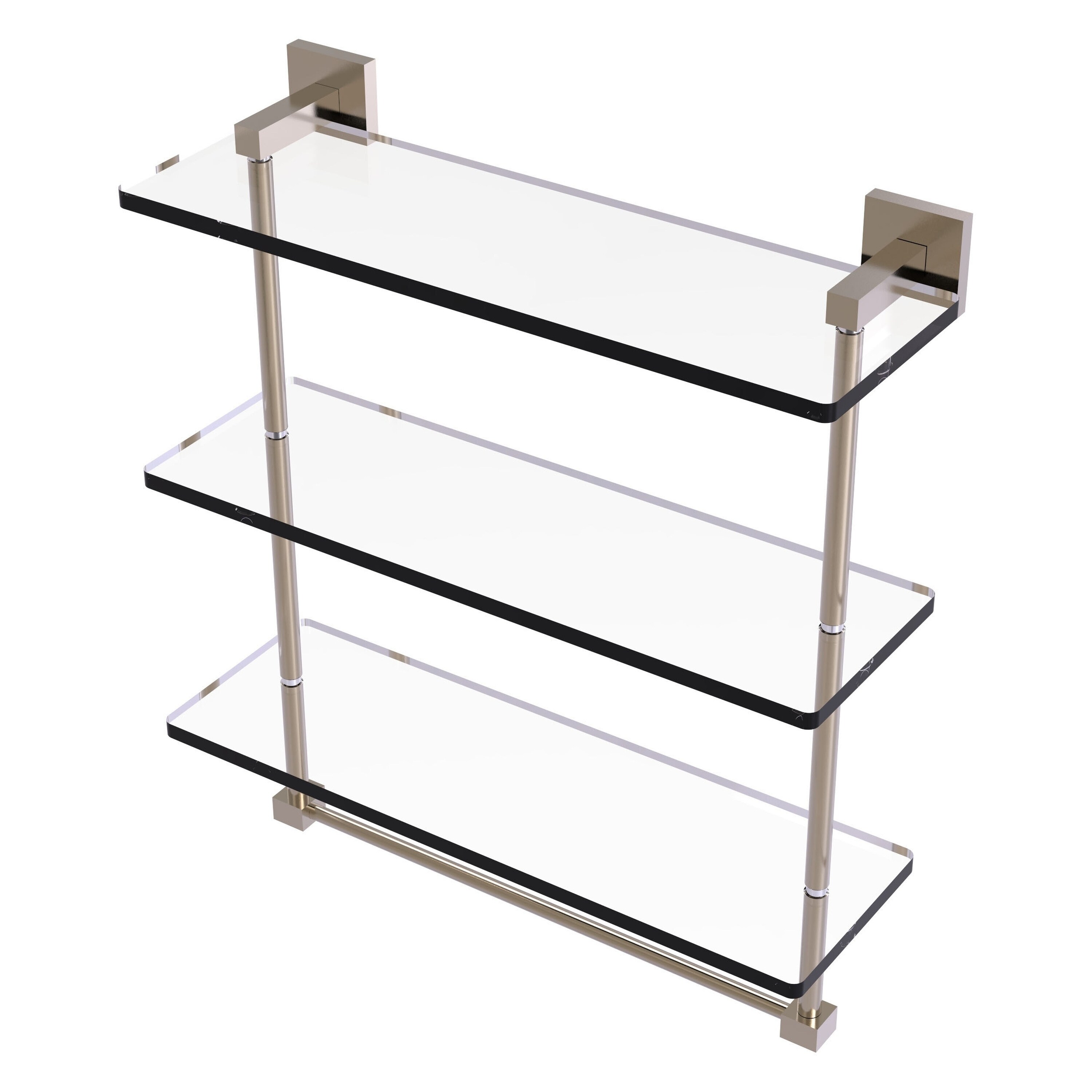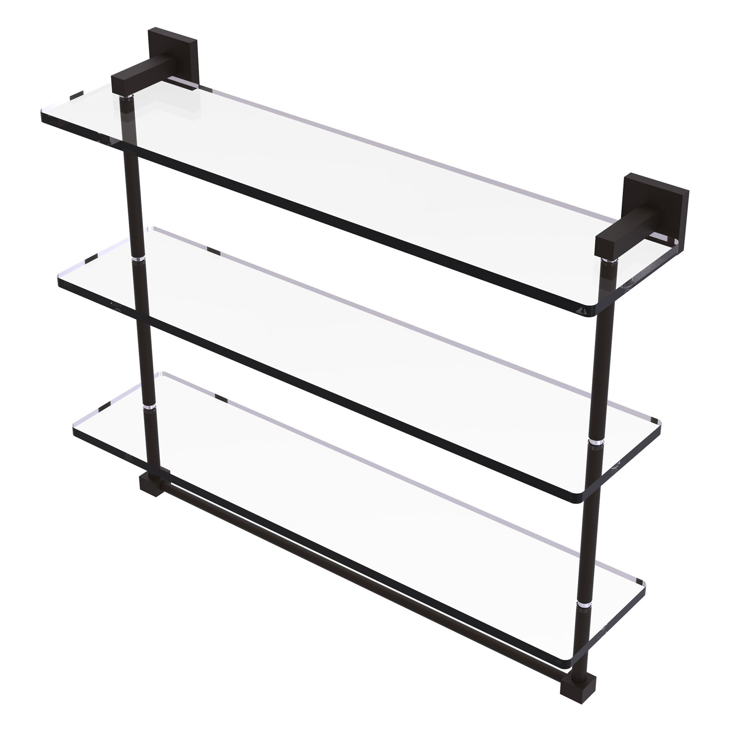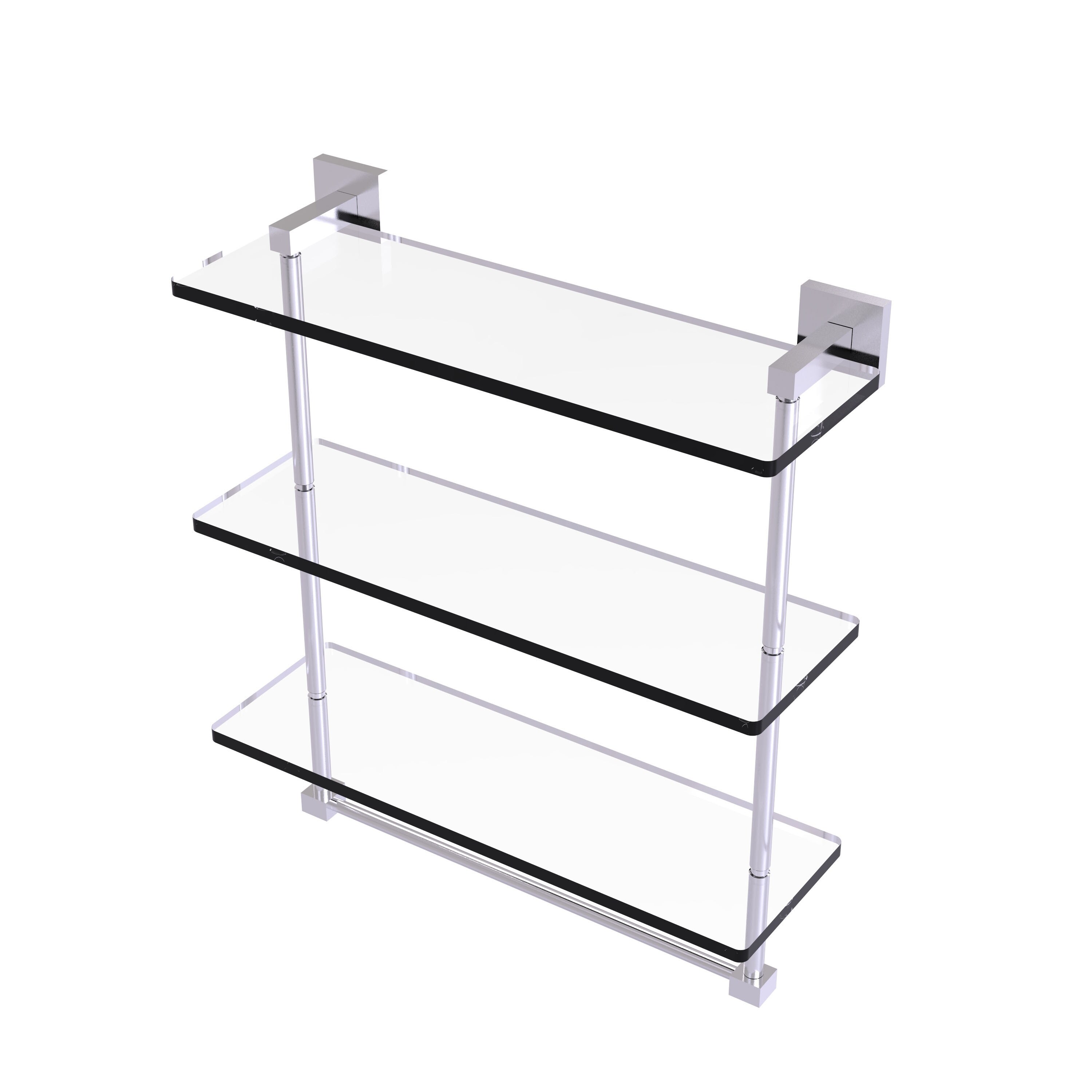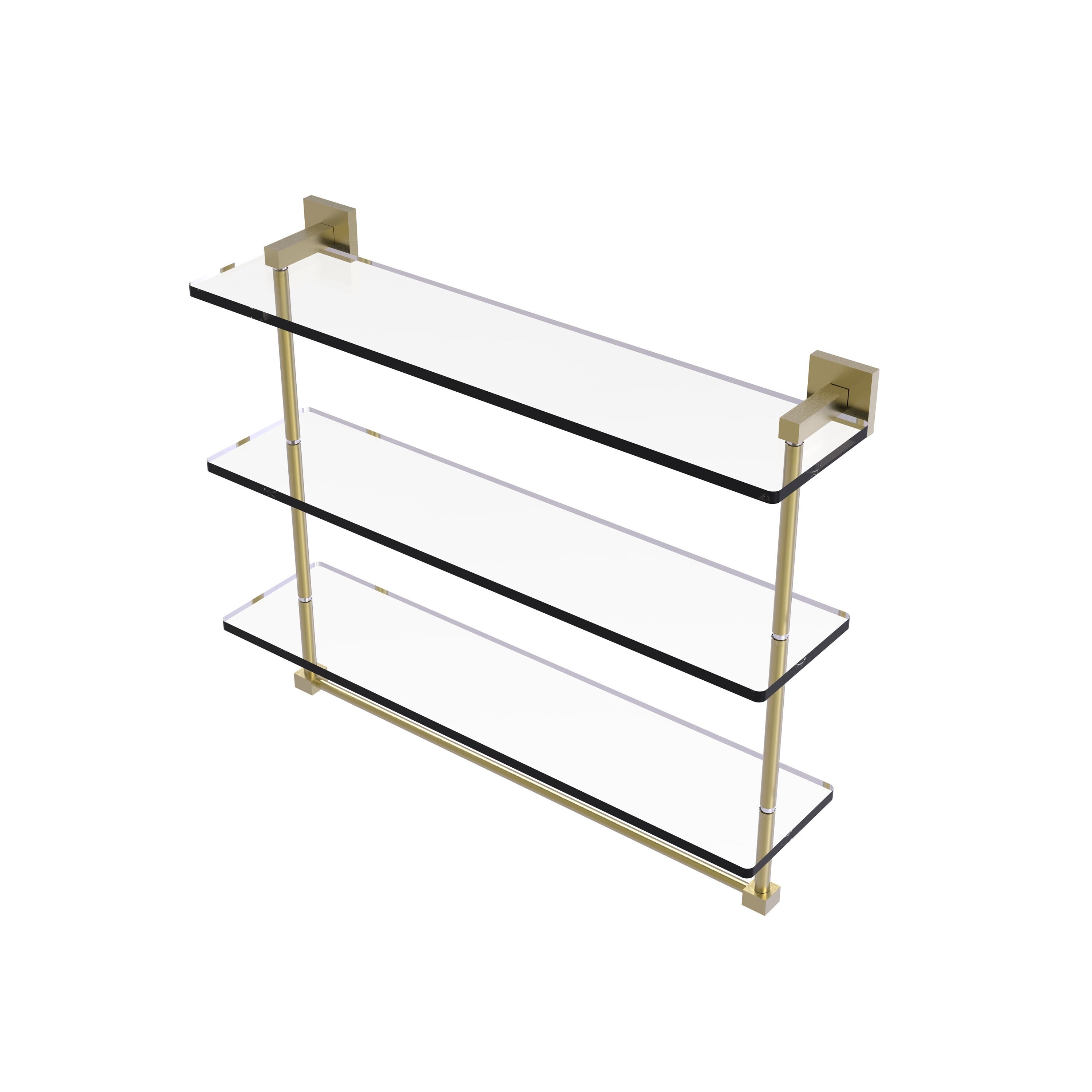 Allied Brass 22 Inch Triple Tiered Glass Shelf with integrated towel bar