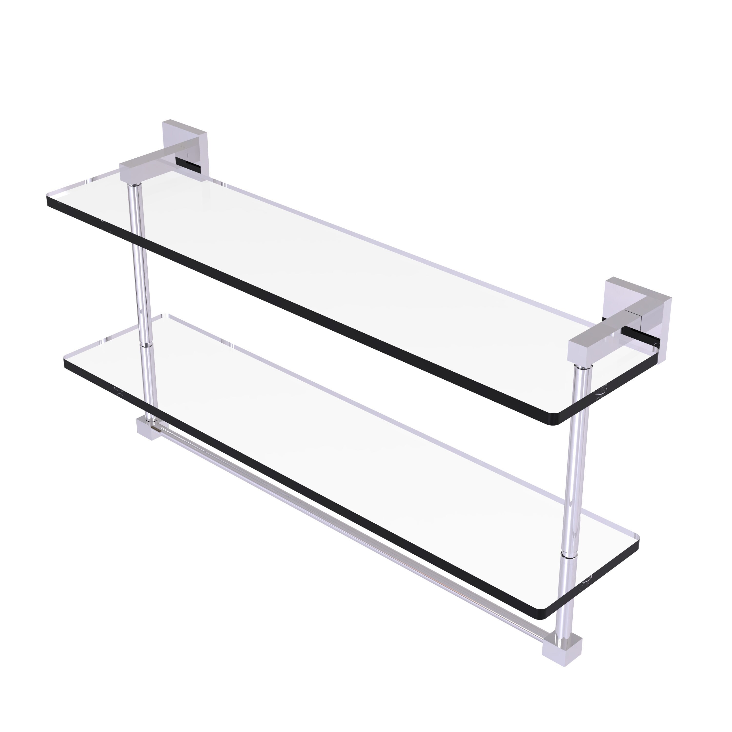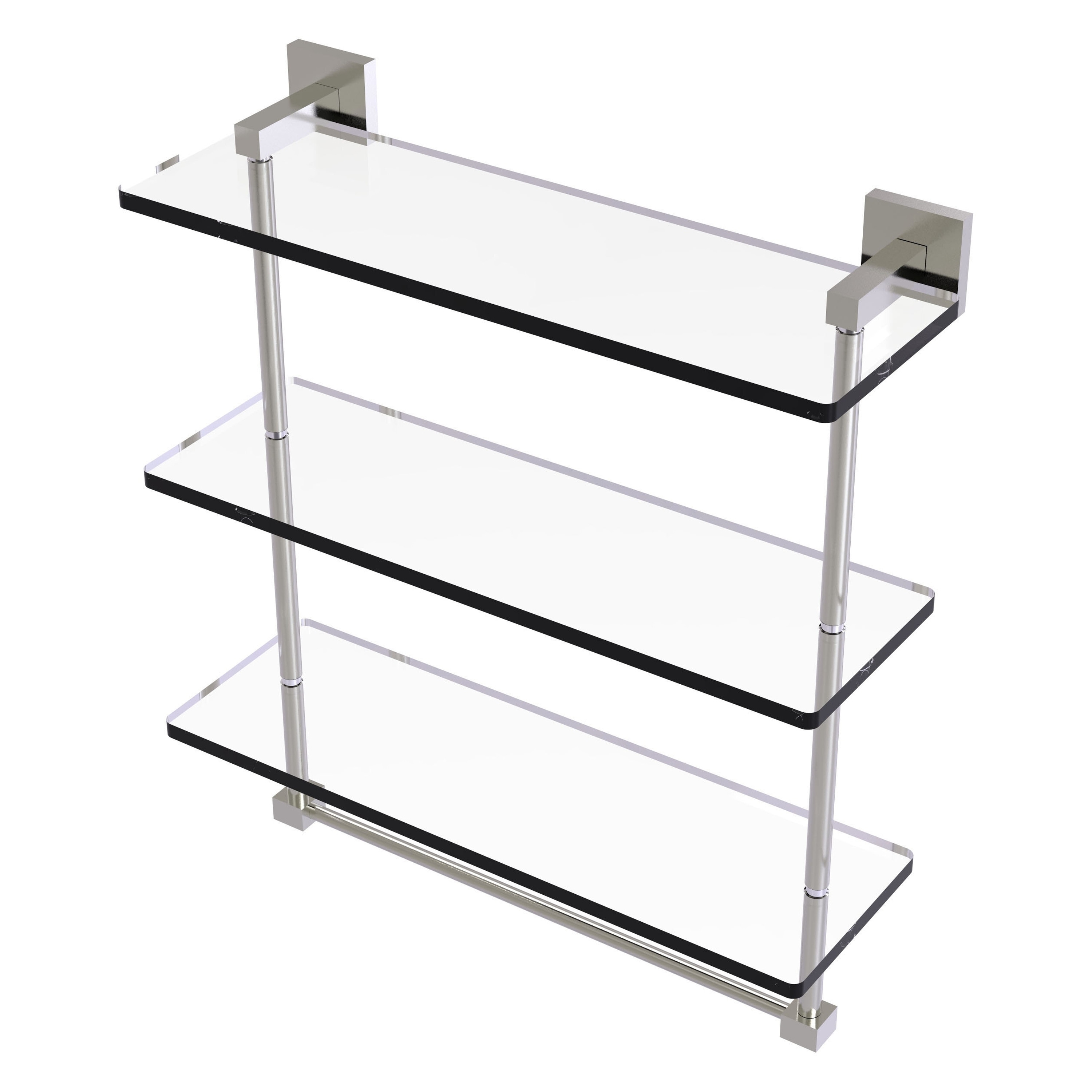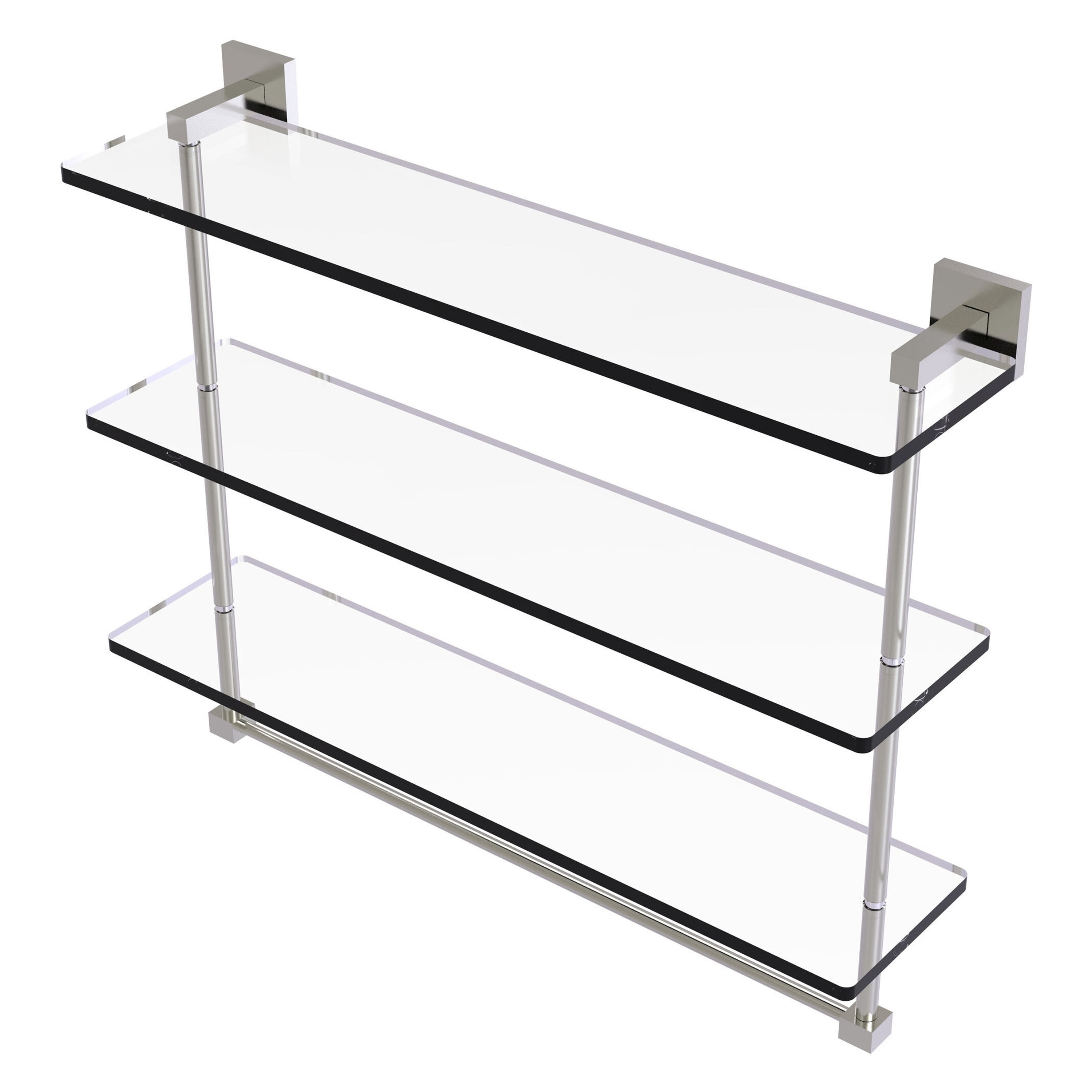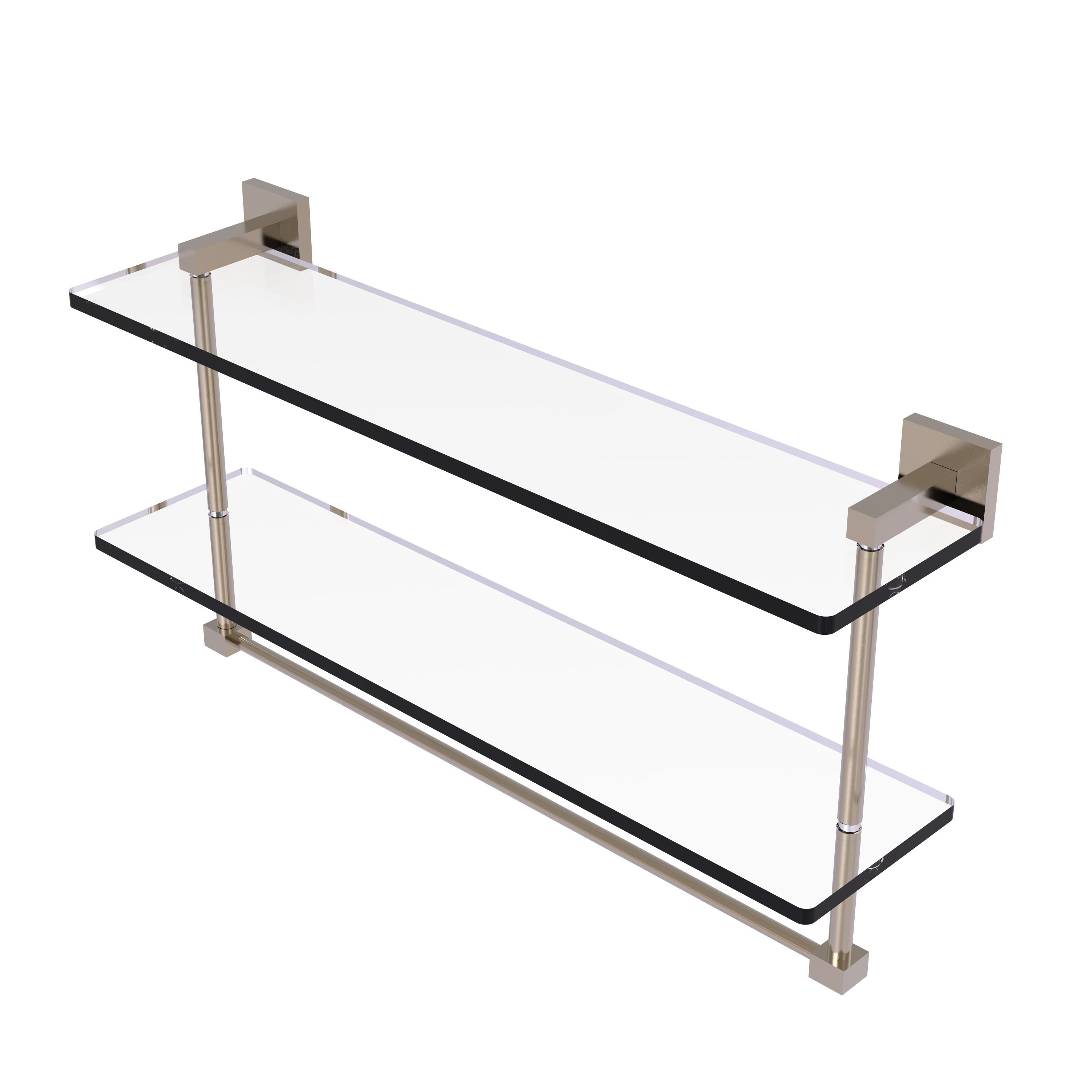 Allied Brass 22 Inch Triple Tiered Glass Shelf with integrated towel bar