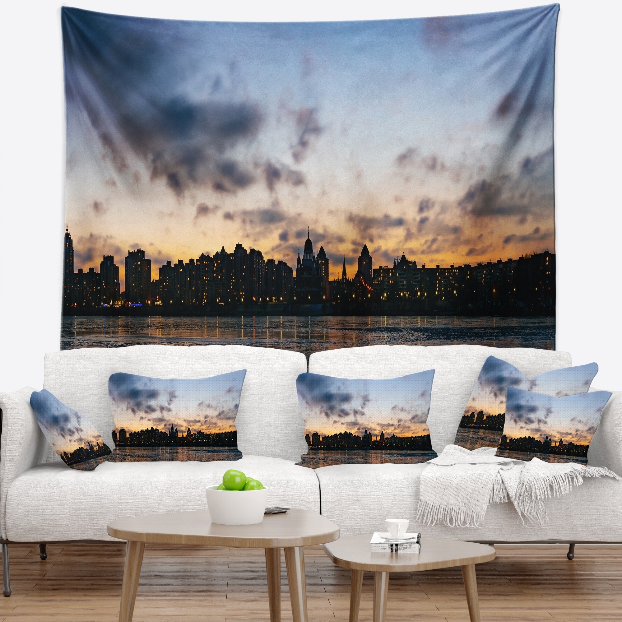 Designart 'Sunset with Clouds in Kiev Panorama' Cityscape Wall Tapestry