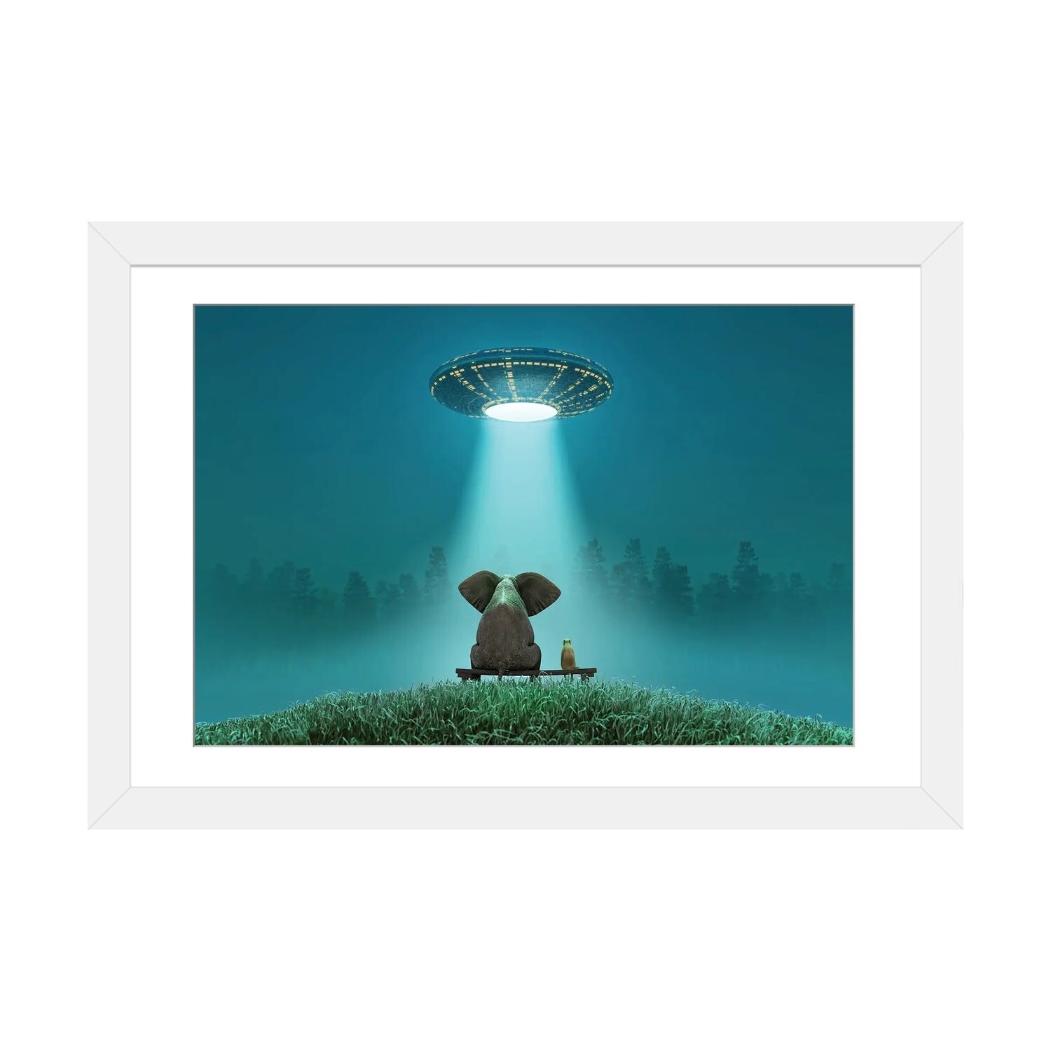 iCanvas "Elephant And Dog Look At A Flying Saucer" by Mike Kiev