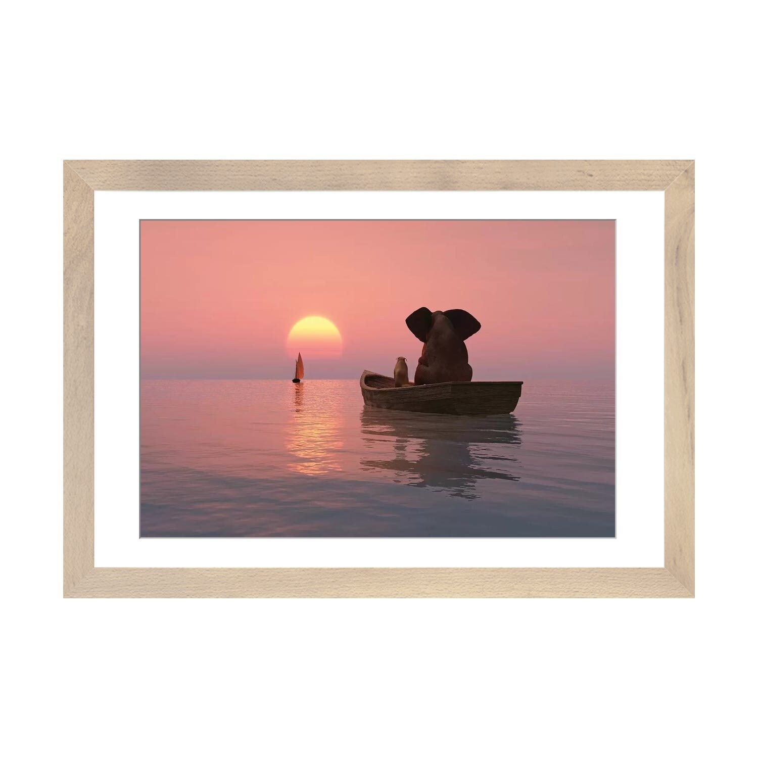 iCanvas "Elephant And Dog Are Floating in A Boat At Sunset" by Mike Kiev PFA