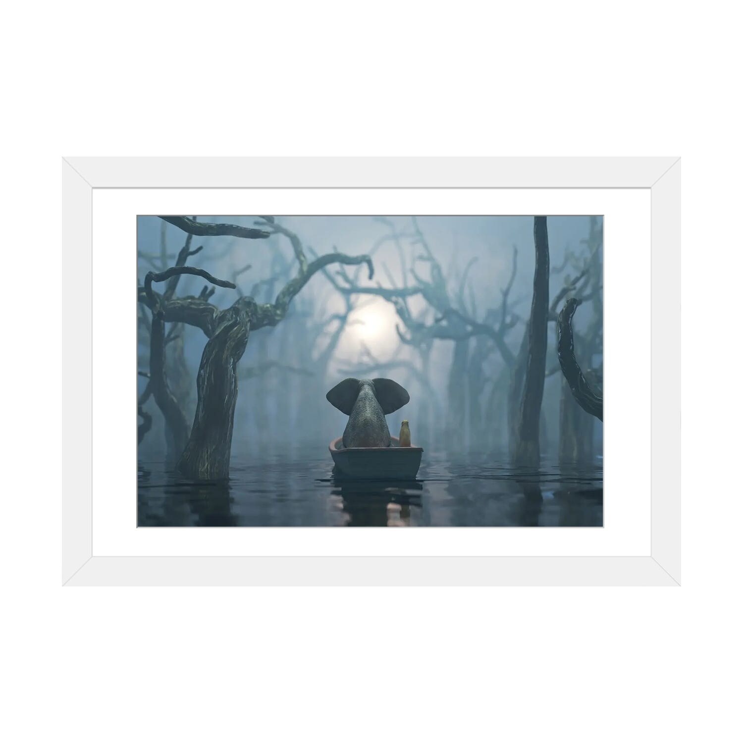 iCanvas "Elephant And Dog Float on A Boat on the River in the Fog" by Mike Kiev
