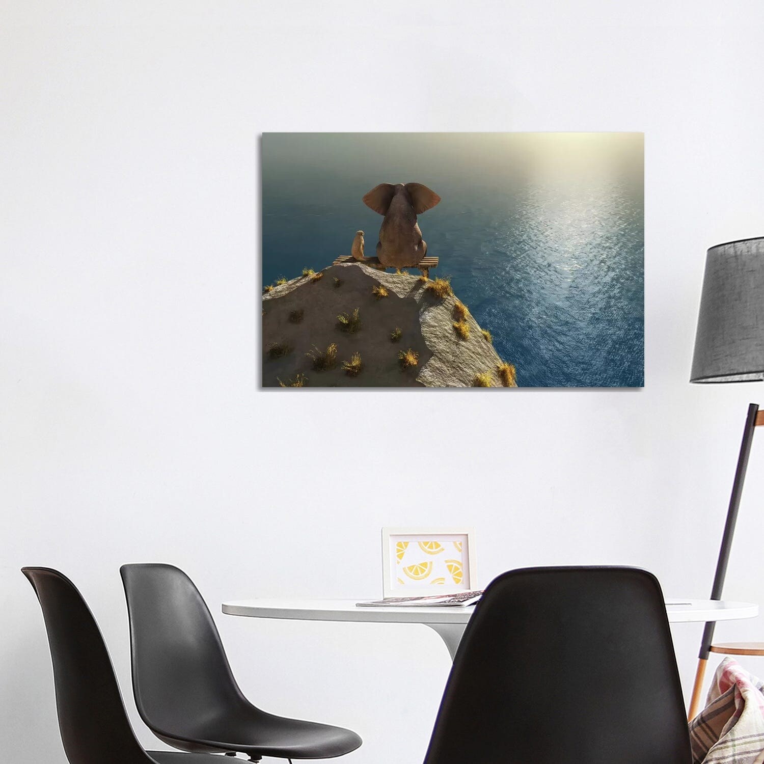 iCanvas "Elephant And Dog Rest on A Crag Near the Sea" by Mike Kiev