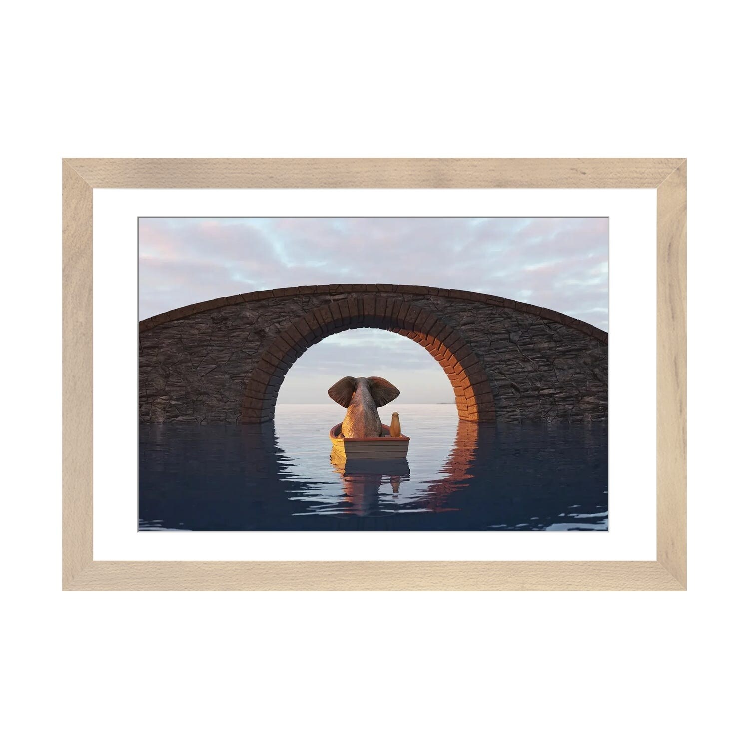 iCanvas "Elephant And Dog Float in A Boat Under the Bridge II" by Mike Kiev PFA
