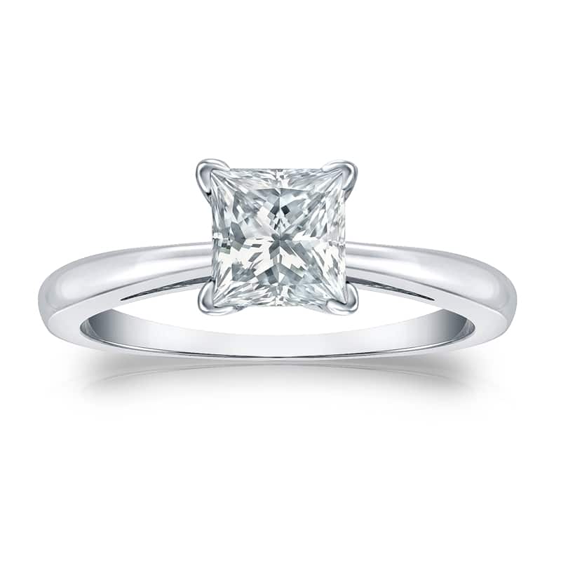 Auriya Platinum GIA Certified 1 1/2-Carat TDW Princess-Cut Solitaire Diamond Engagement Ring