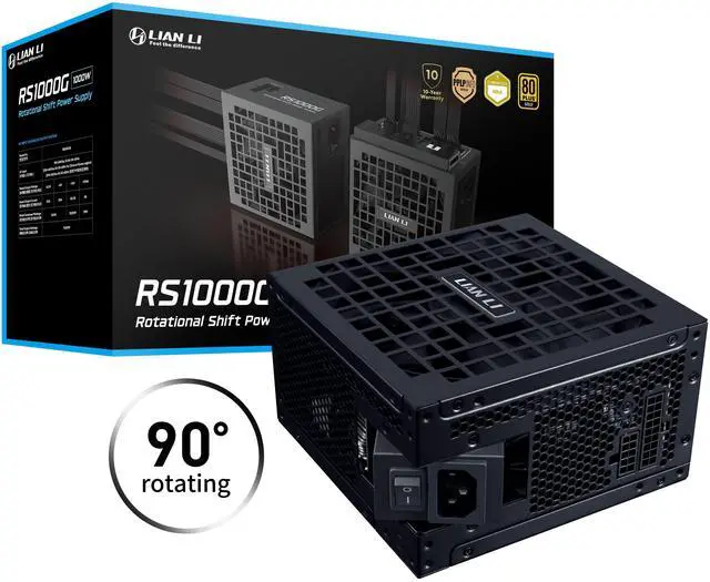 Lian Li RS 1000W Rotational Shift Fully Modular ATX Power Supply (W/ USB Fan Hub) 90° AC inlet,Cybenetics Platinum, 80+ Gold, ATX 3.1, PCle 5.1, 12V-2x6 Cable, 10 Year Warranty, Black (RS1000G.BH)