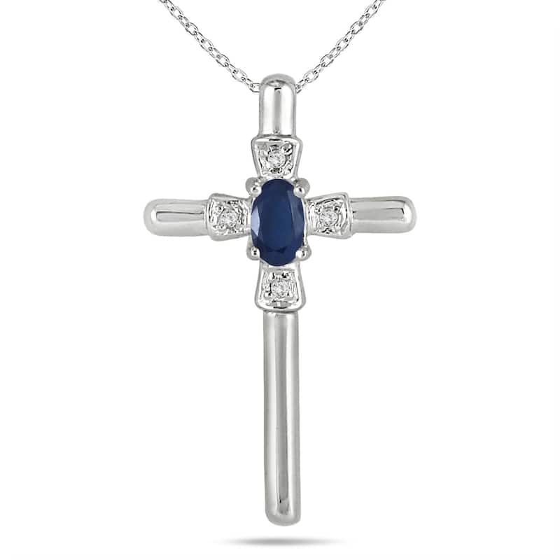 Sapphire and Diamond Cross Pendant 10k White Gold