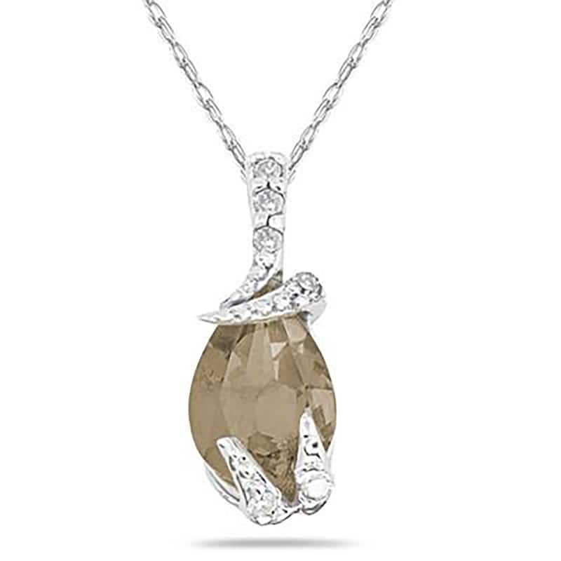 Pear Shaped Smokey Quartz and Diamond Pendant in 10k White Gold
