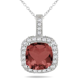 Garnet and Diamond Halo Pendant in 10K White Gold