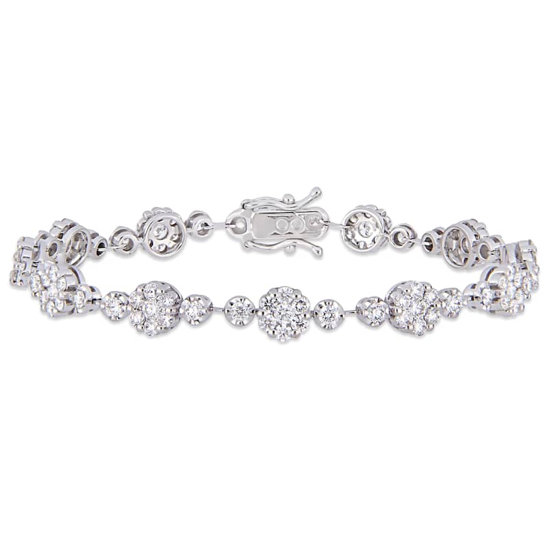 Miadora 14k White Gold 3-3/4ct TDW Diamond Floral Station Tennis Bracelet