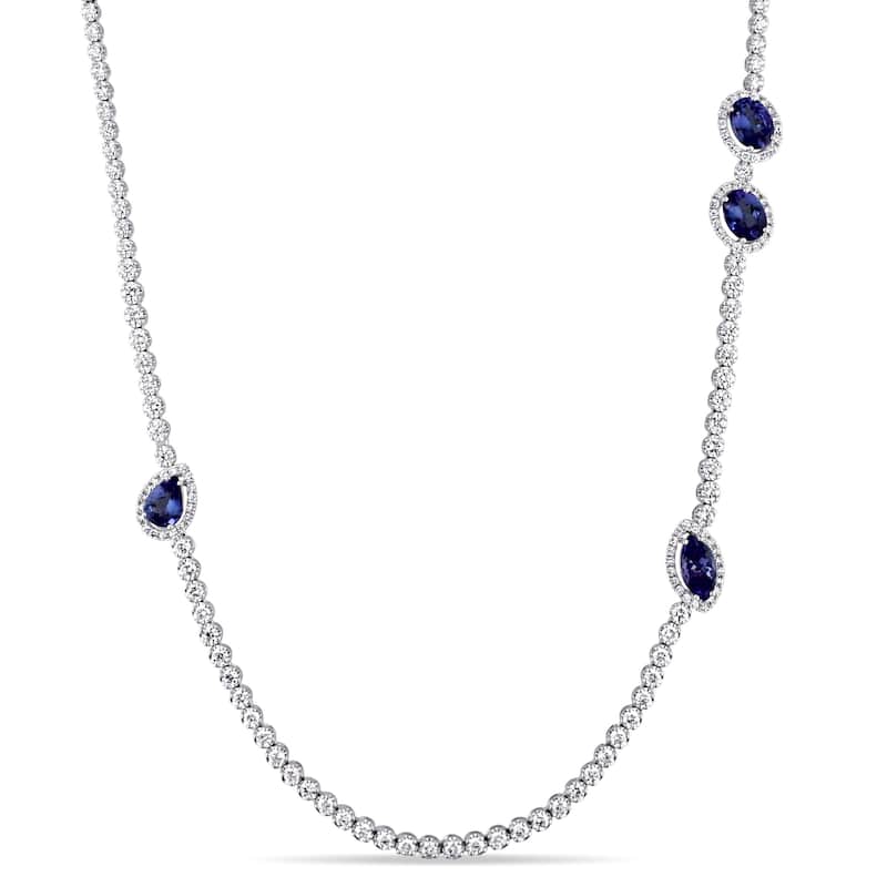 Miadora Signature Collection 18k White Gold 8 1/10ct TDW Diamond and Sapphire Station Strand Necklace (G-H, SI1-SI2) - Blue
