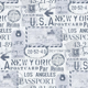 Matte Earhart Labels Wallpaper, 27 feet long X 27 inchs Wide, Navy and White