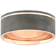 Pompeii3 14k Rose Gold Black Brushed Finish Mens 7MM Comfort Fit Ring Wedding Band - White