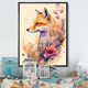 Designart "Cute Fox Floral Art IV" Animals Framed Canvas Art Print