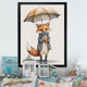 Designart "Cute Fox With Umbrella Rainy Day" Animals Fox Framed Canvas Print