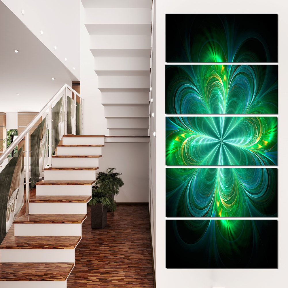 Designart "Green Purple Colorful Fireworks" Abstract Art on Framed Canvas