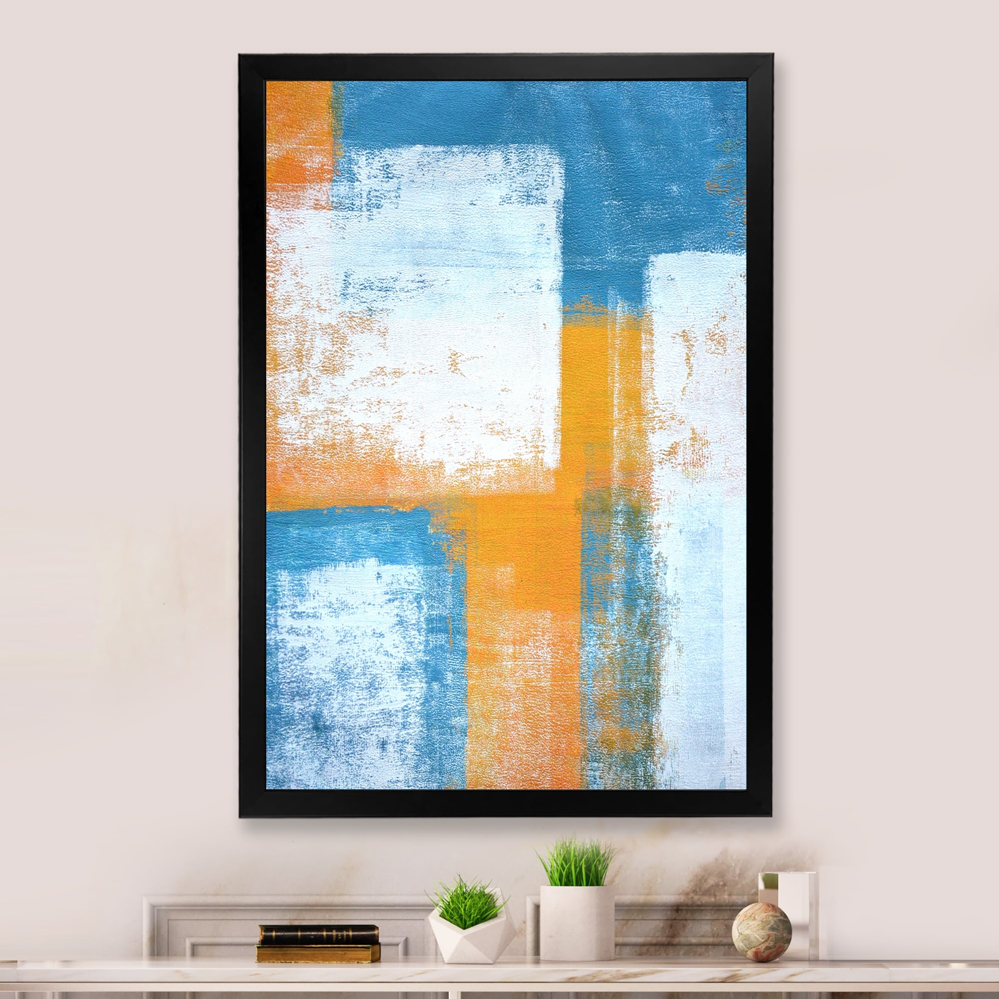 Designart "Teal Meets Orange Abstract Art II" Modern Framed Art Print
