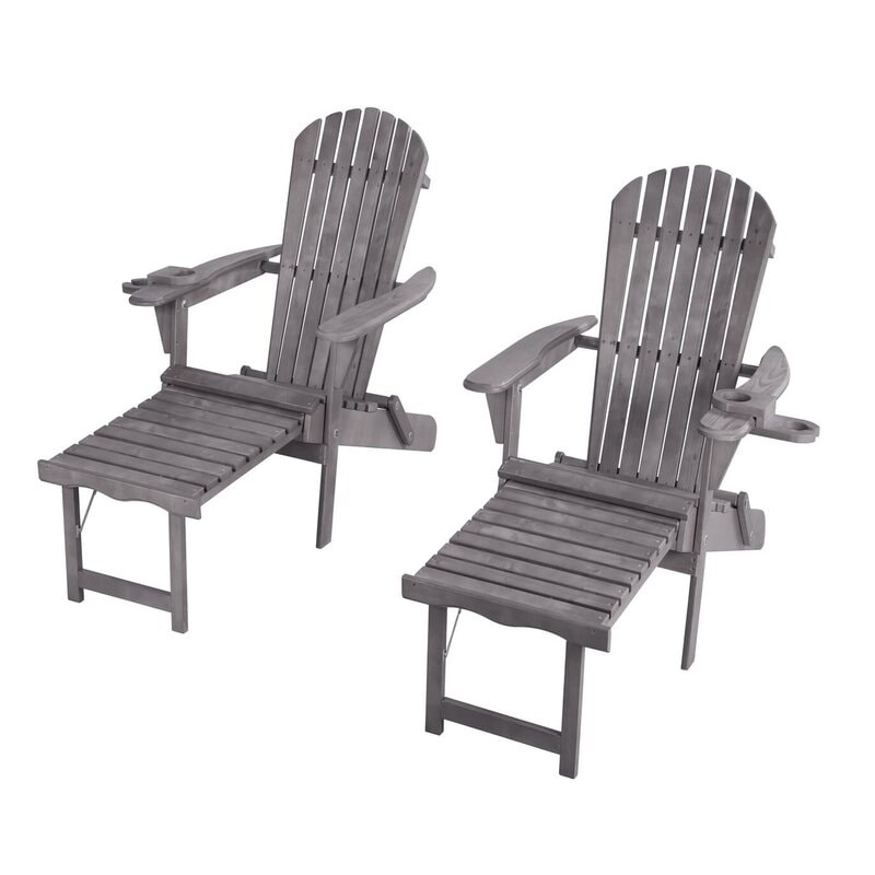 Folding Adirondack Chair with Pullout Ottoman with Cup Holder