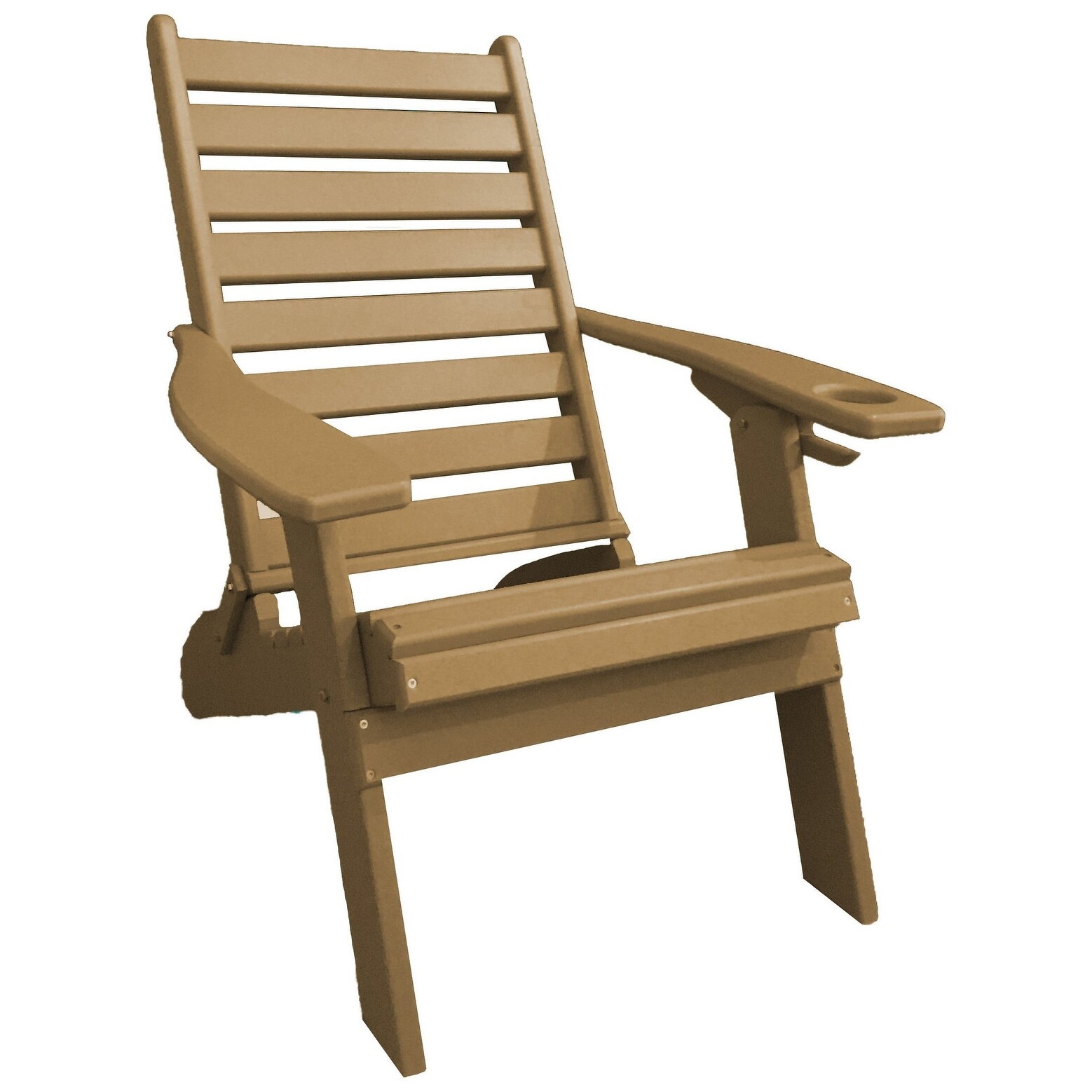 Poly Lumber Folding Adirondack Chair with Pullout Ottoman and Cup Holder