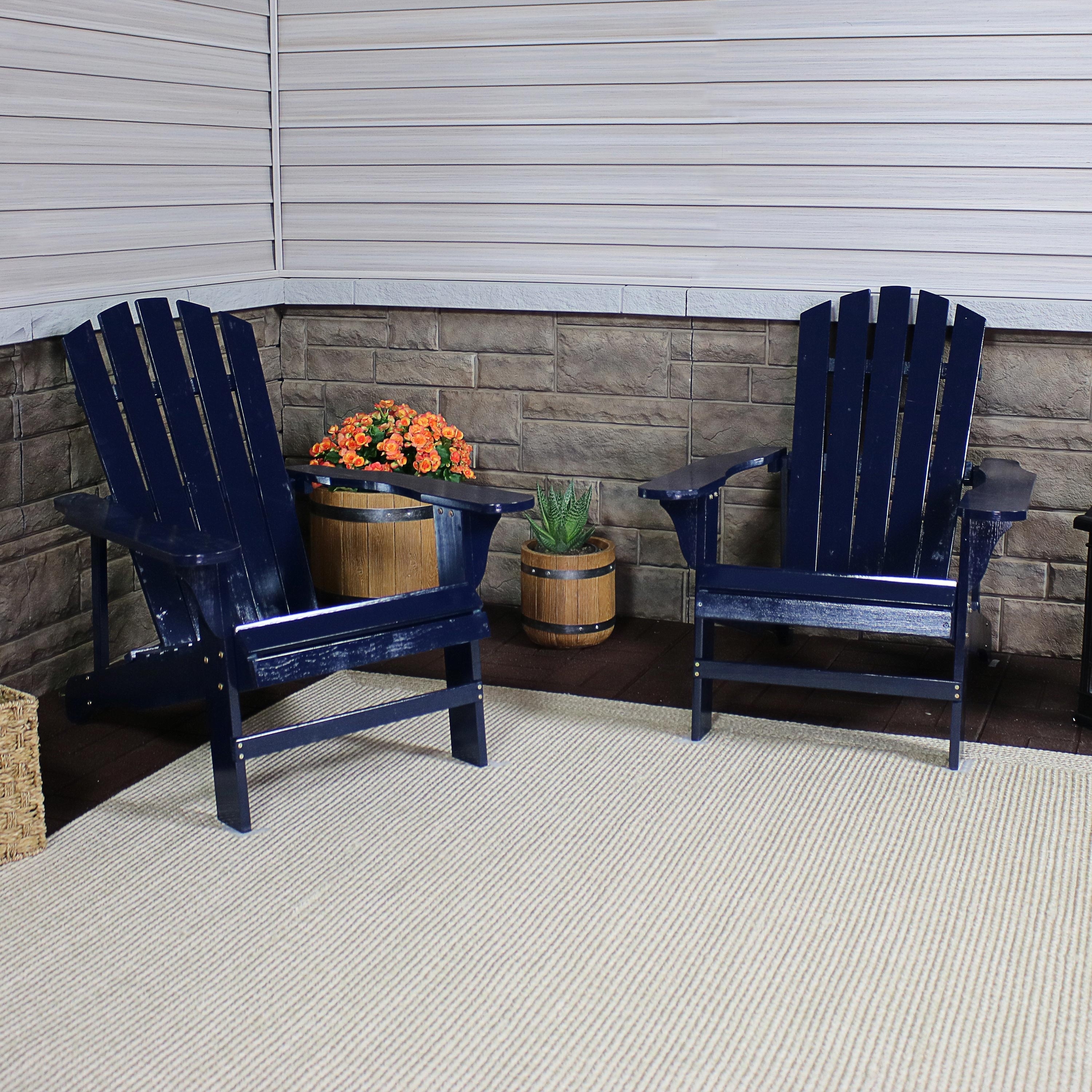 Sunnydaze Coastal Bliss Wooden Adirondack Chair Set of 2 - Navy Blue