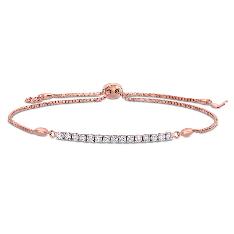 Miadora Signature Collection 14k Rose Gold 3/4ct TDW Diamond Adjustable Bolo Bracelet - White