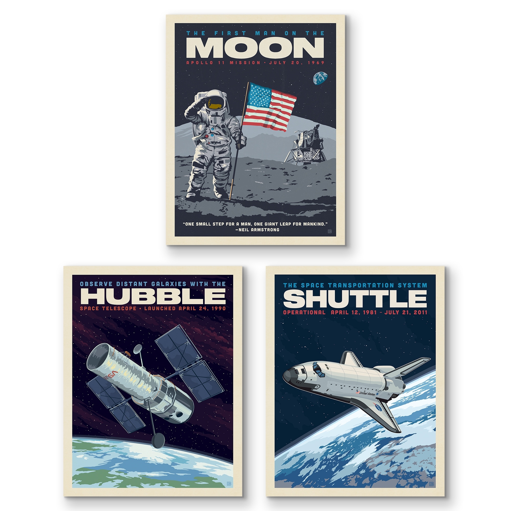Americanflat 3 Piece Wrapped Canvas - Vintage Space Exploration Art By Anderson Design Group