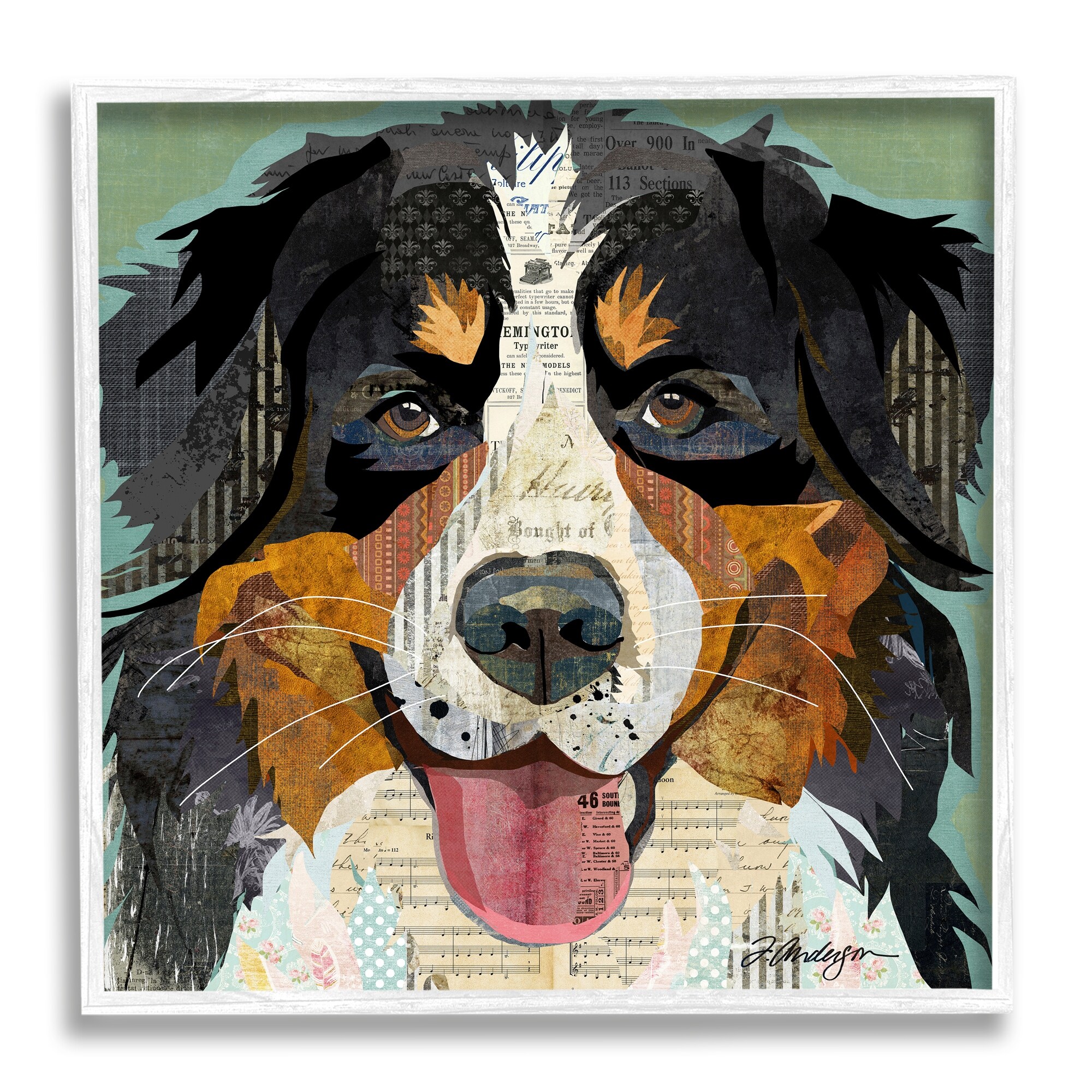 Stupell Bernese Mountain Dog Portrait Layered Ephemera Collage Framed Wall Art, Design by Traci Anderson