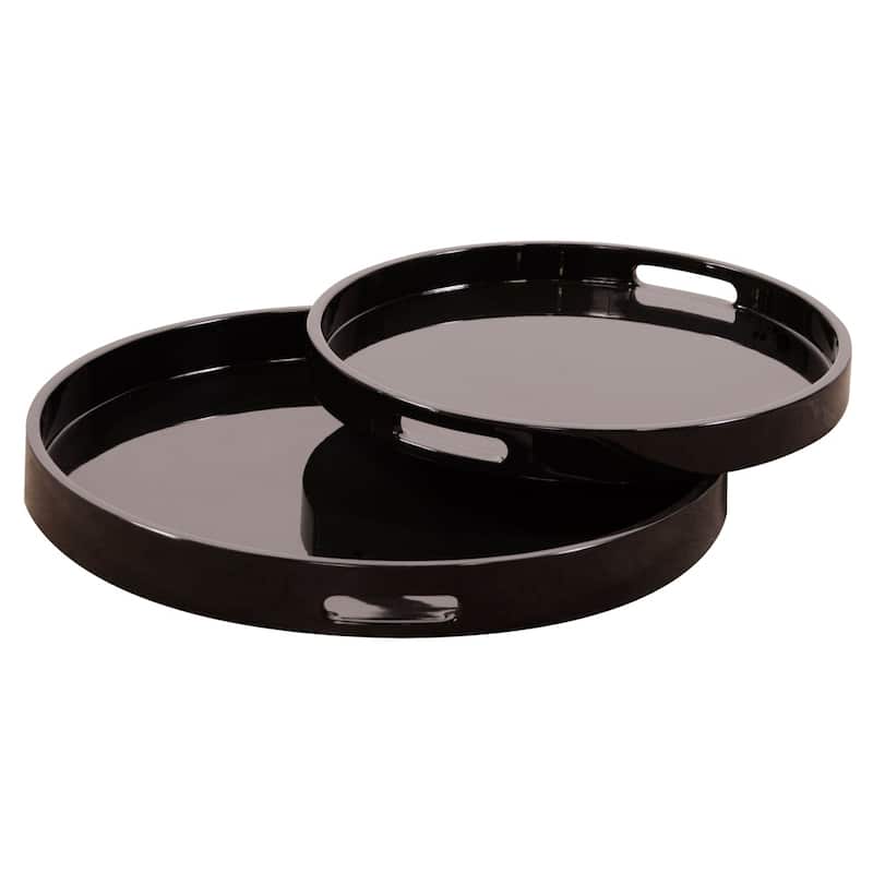 Allan Andrews Black Lacquer Round Wood Tray Set with Handles