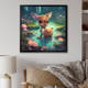 Designart "Cute Fox With Umbrella Rainy Day" Animals Fox Framed Canvas Print