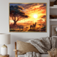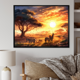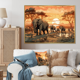 Designart "Orange African Safari With Elephants I" Animals Elephant Framed Canvas Print