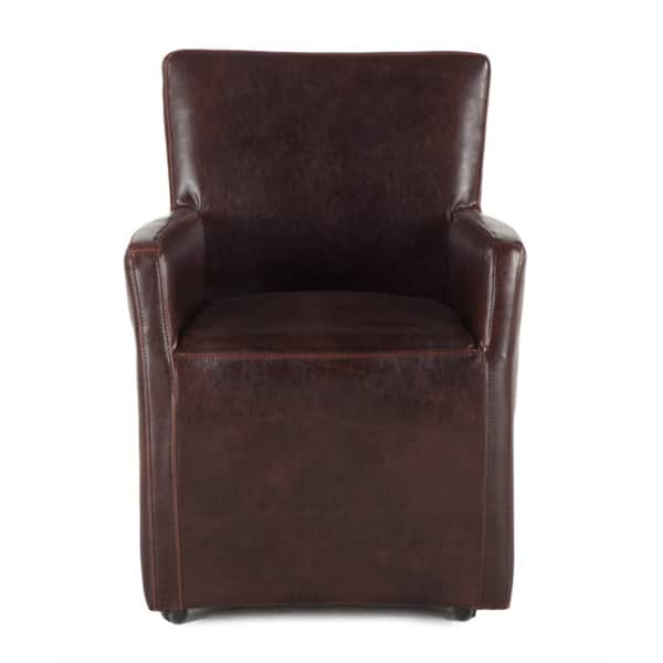 Paddy Brown Leather Wheeled Armchair