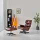 Mid-century Modern Leather Arm Chair and Ottoman Set