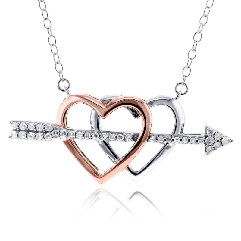 Annello by Kobelli 10k Two Tone Gold 1/5ct TDW Cupids Arrow Double Hearts Diamond Pendant