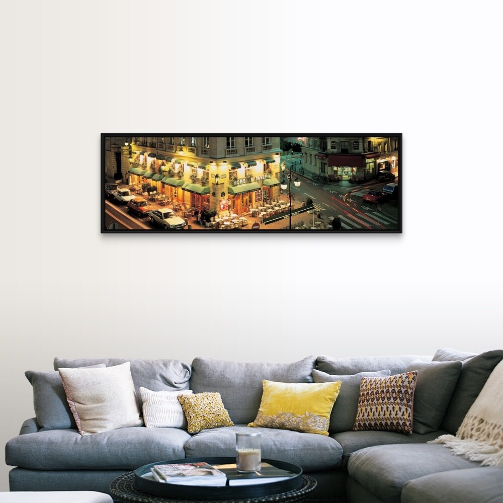 "View of city and Eiffel Tower, Paris, France." Black Float Frame Canvas Art