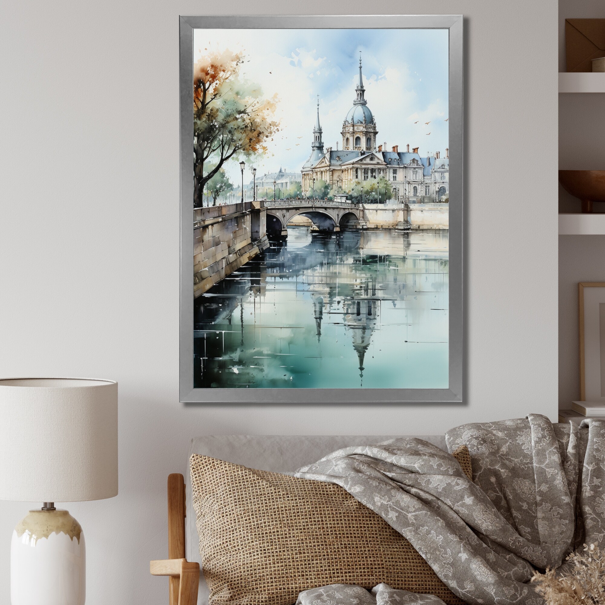 Designart "Watercolor Of Paris France Ii" City Paris Framed Wall Art for Living Room