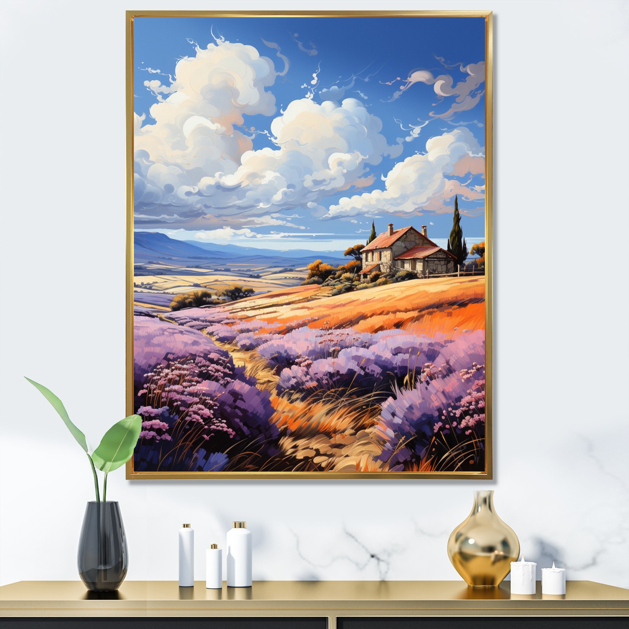 Designart "France Lavender Landscape I" France Framed Wall Art Living Room